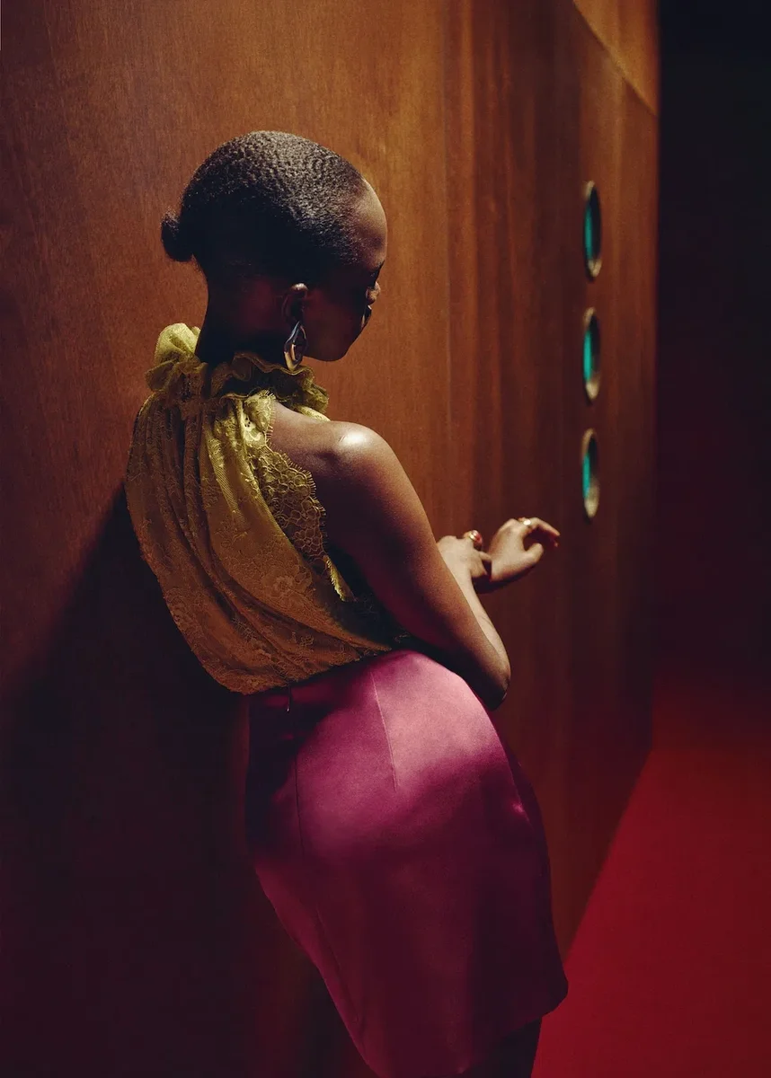 Tato sukně je ušita ze saténové látky a má krátký, rovný střih se středně vysokým pasem. Na zadní straně má zapínání na zip a vnitřní podšívku. Součástí je i ladící top. Červený model je k dostání výhradně online.