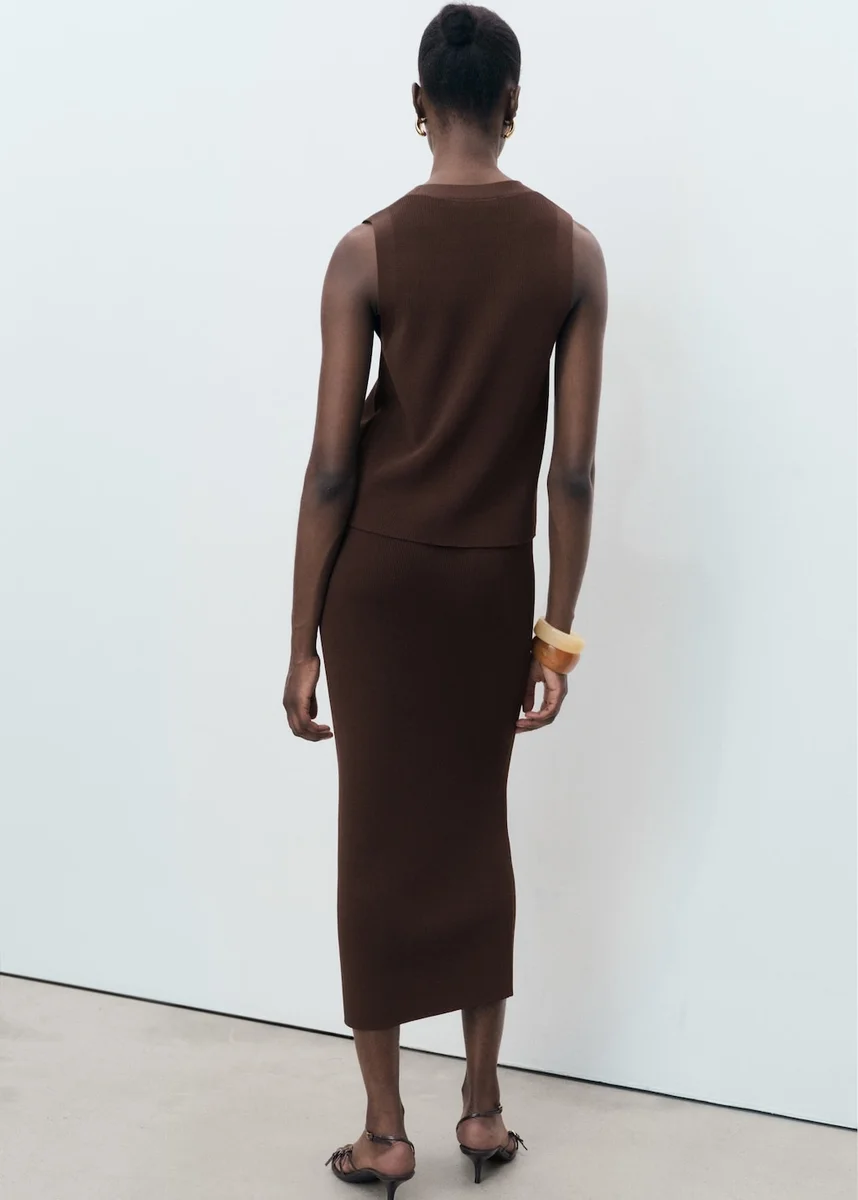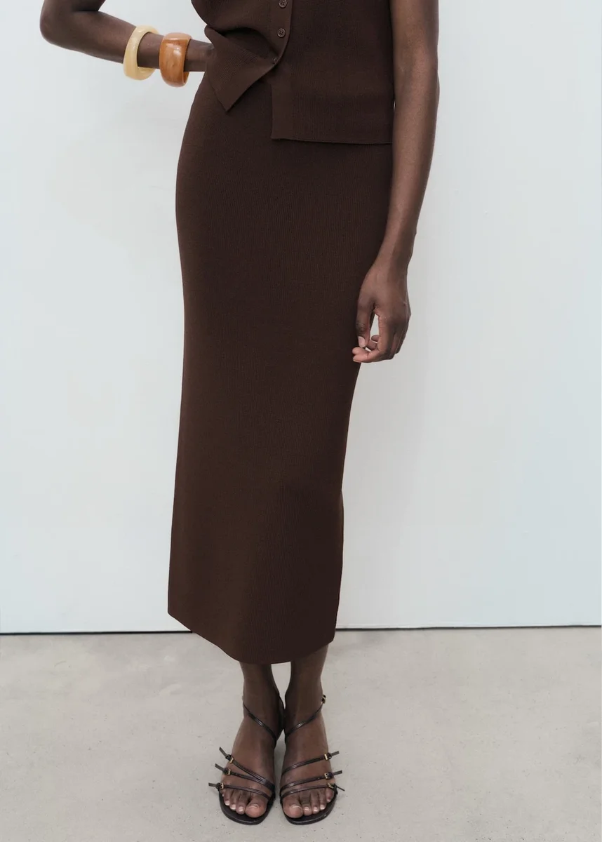 Tato sukně z jemného úpletu má rovný střih a středně vysoký pas. V kombinaci s ladící vestou je ideální pro sladěný look. K dispozici v nadměrných velikostech