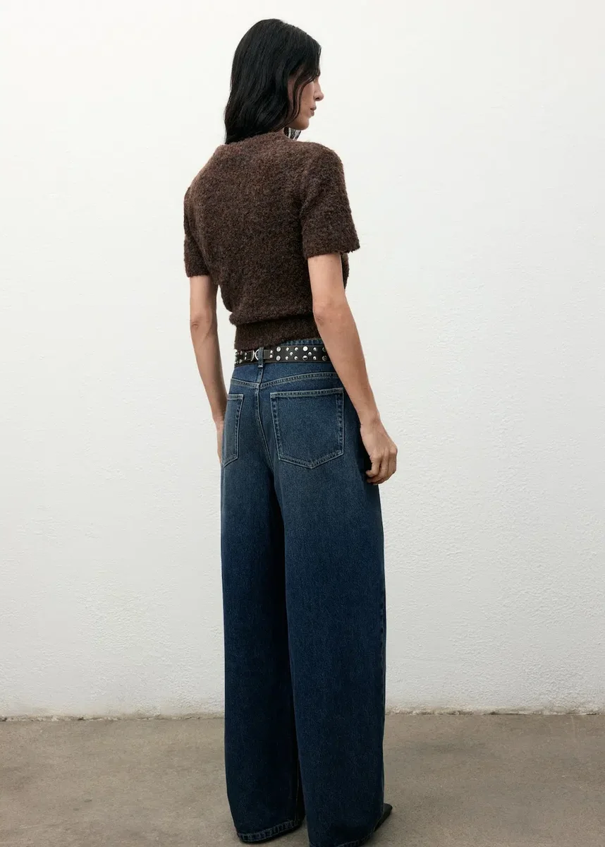 Tento rovný svetr z bouclé tkaniny má kulatý výstřih a krátké rukávy