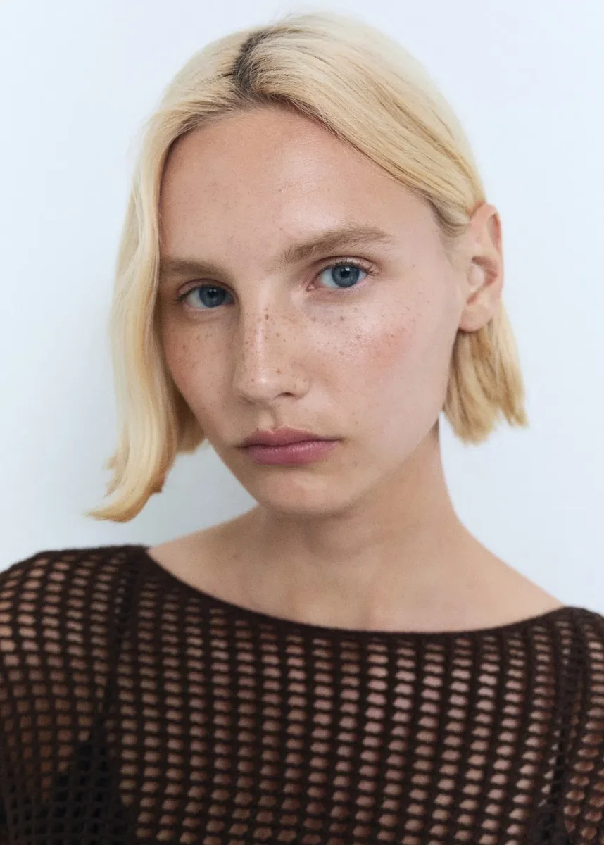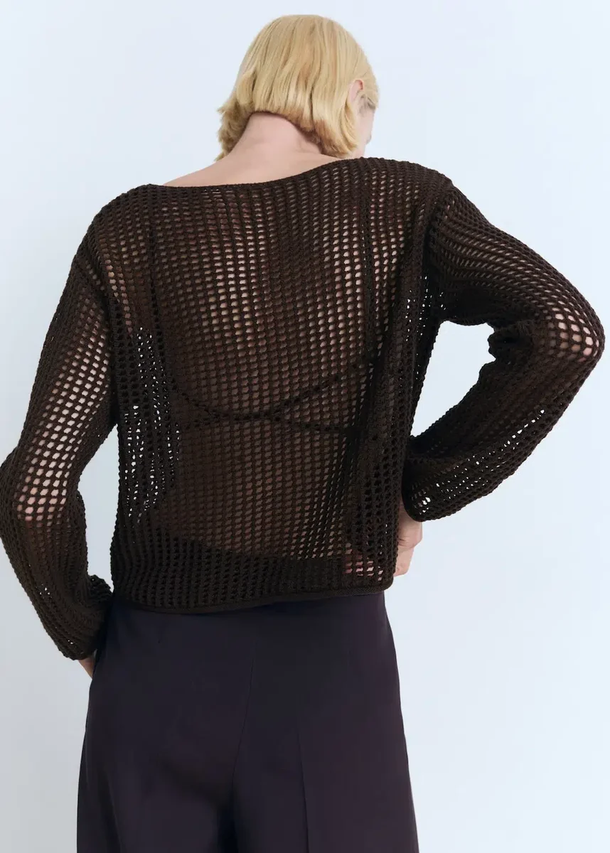 100 % bavlna. Háčkovaný design. Rovný střih. Lodičkový výstřih. Dlouhé rukávy. Bez zapínání