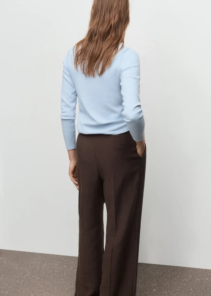 Tento rovný model je ušitý ze středně silné pleteniny a má lodní výstřih a dlouhé rukávy. Bez zapínání