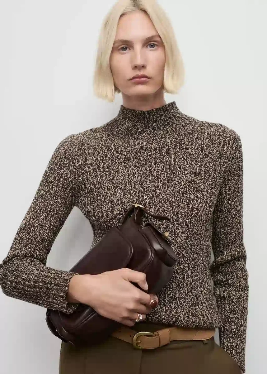 Tento rovný model z melírované pleteniny má stojáček a dlouhé rukávy. Součástí je i ladící kardigan. K dispozici v nadměrných velikostech