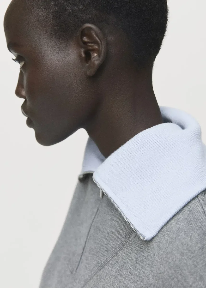 Tento rovný model z pletené látky má rolák se zipem a dlouhé rukávy. K dispozici v nadměrných velikostech