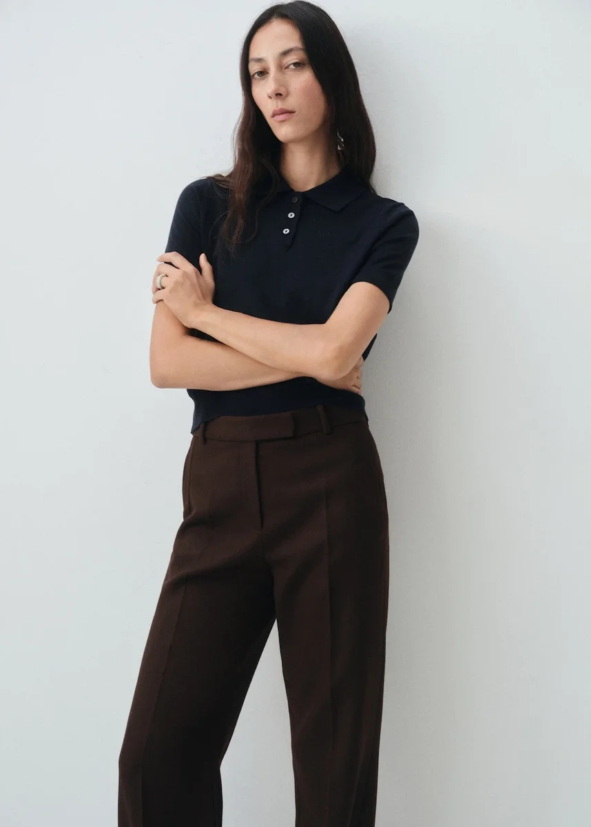 Tento rovný model je vyroben ze 100% jemně pletené merino vlny a má rolák s knoflíkovým zapínáním a krátké rukávy. Kolekce Selection