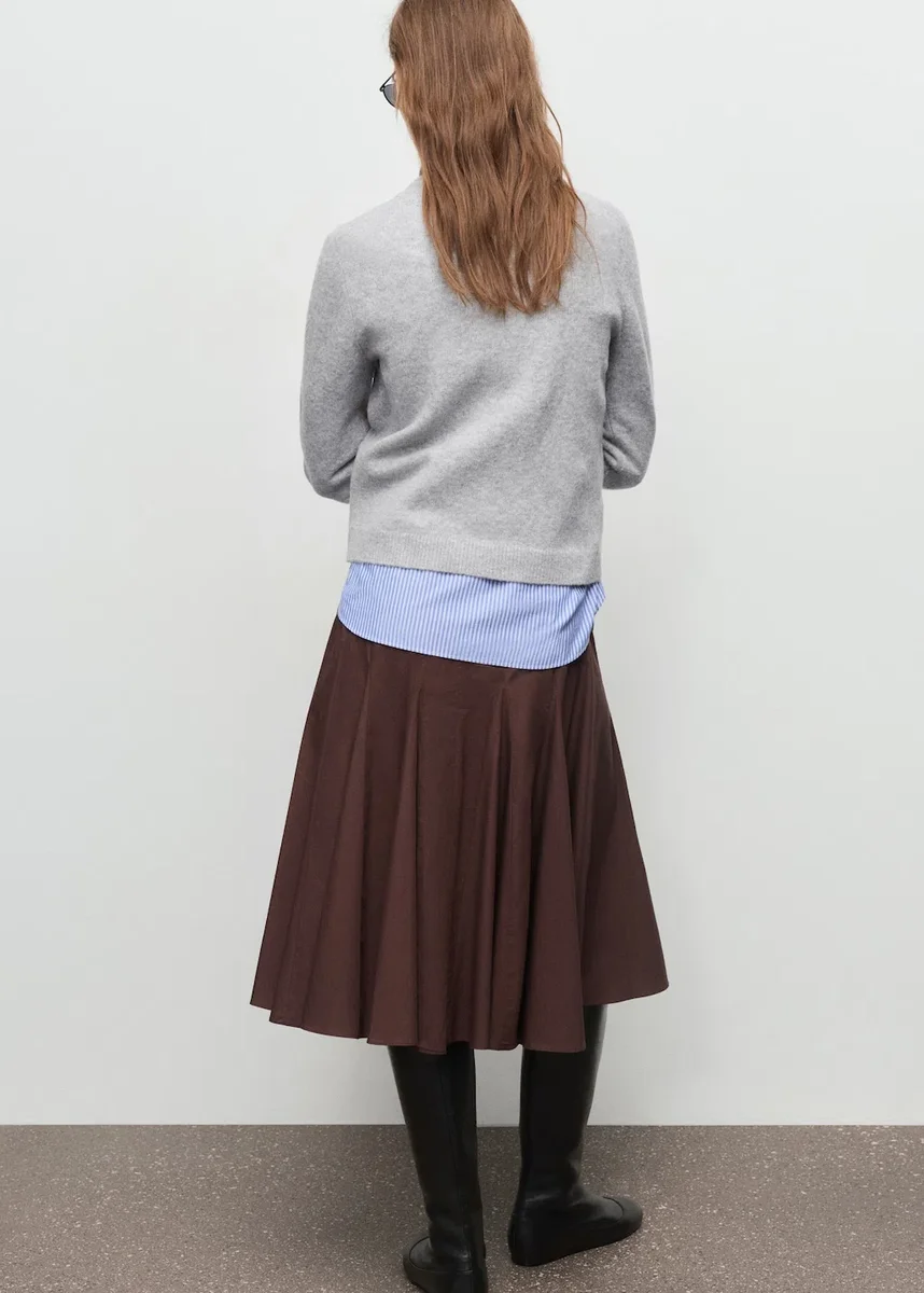 Tento rovný svetr ze středně silné pleteniny má kulatý výstřih a dlouhé rukávy. K dispozici v nadměrných velikostech.