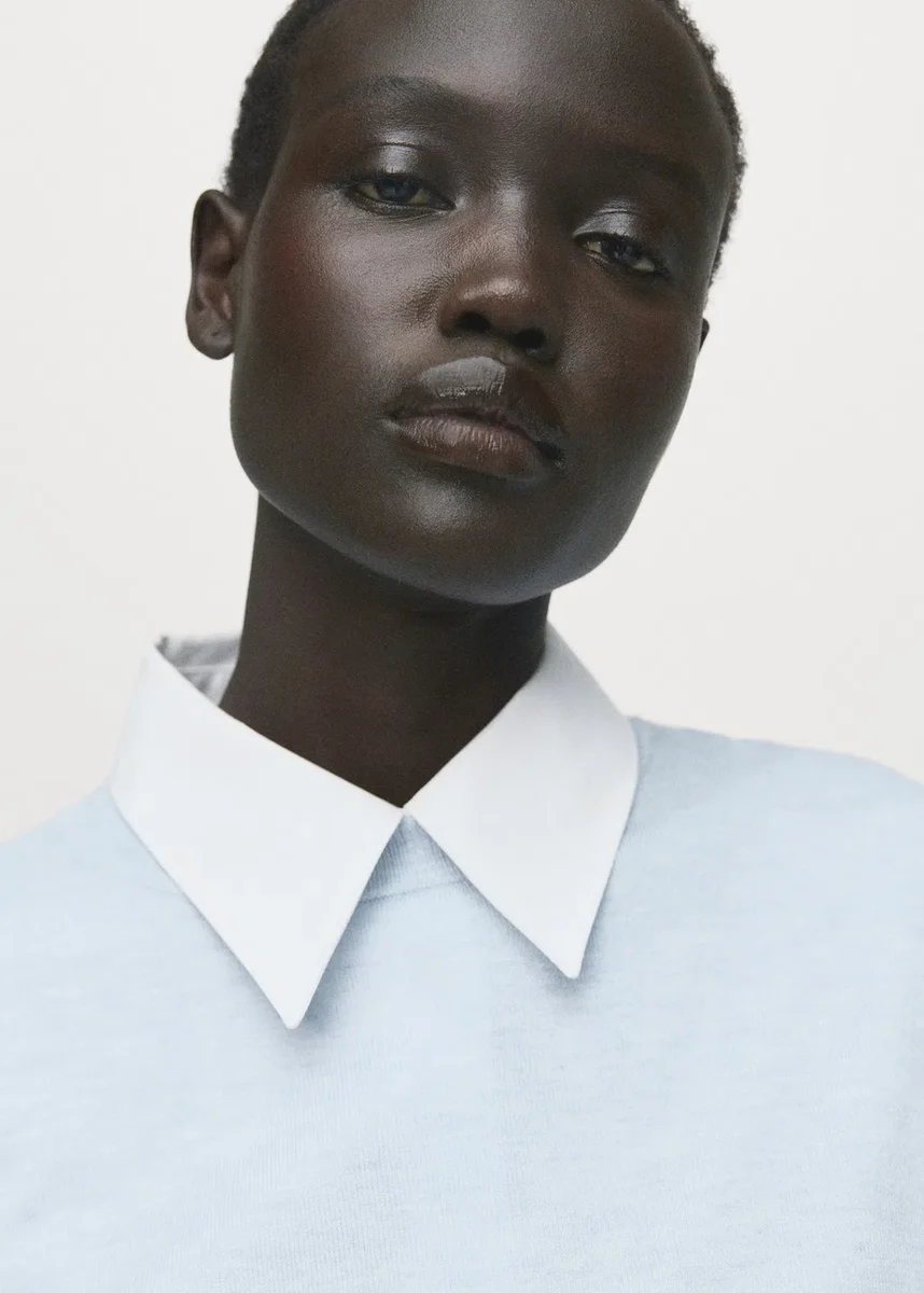 Tento rovný model z jemné pleteniny má hranatý výstřih a dlouhé rukávy