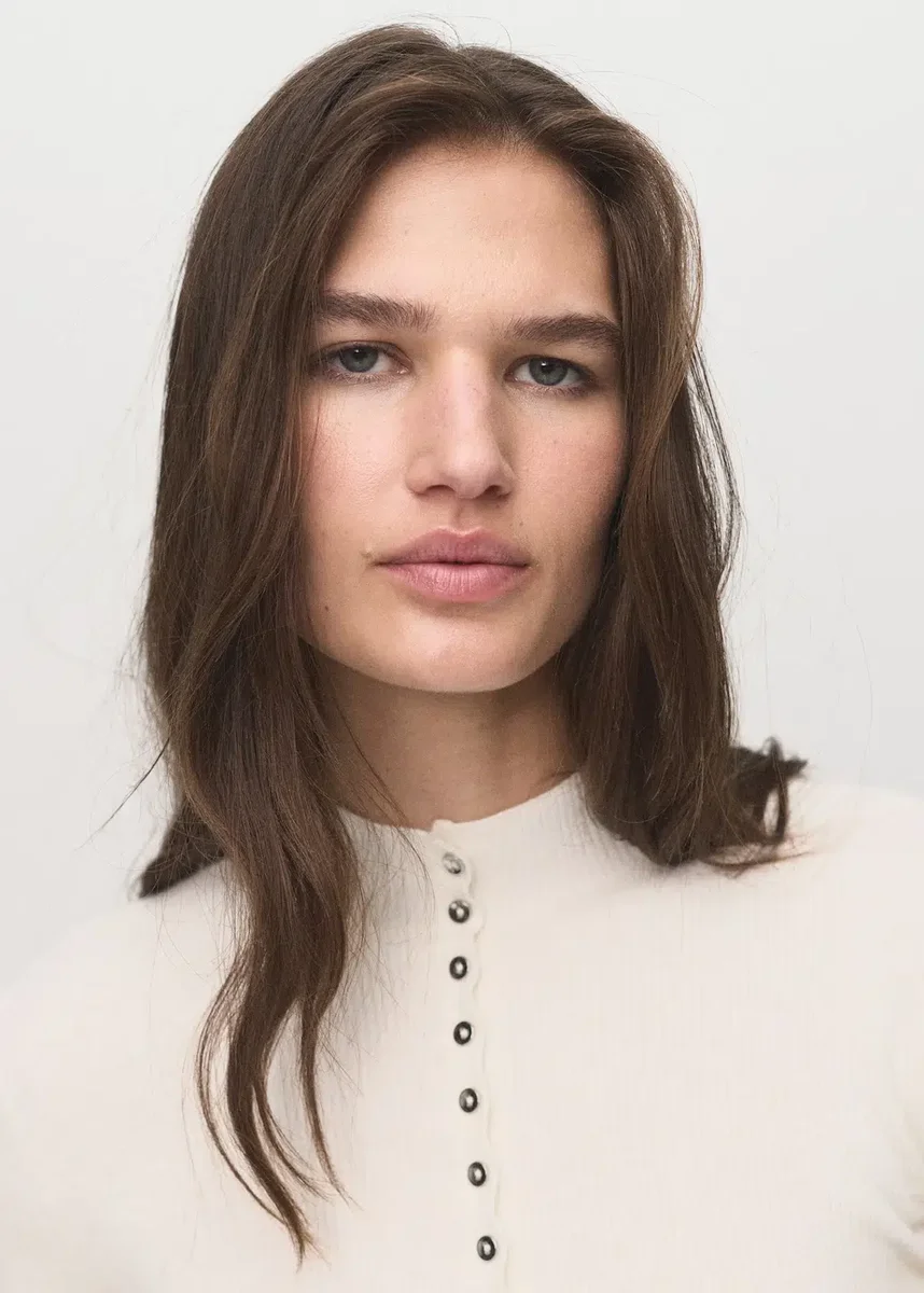 Tento svetr z vlněné směsi má jemný úplet s žebrováním. Jeho střih na míru doplňuje kulatý výstřih a dlouhé rukávy. Zapínání na knoflíky vpředu přidává funkčnost.