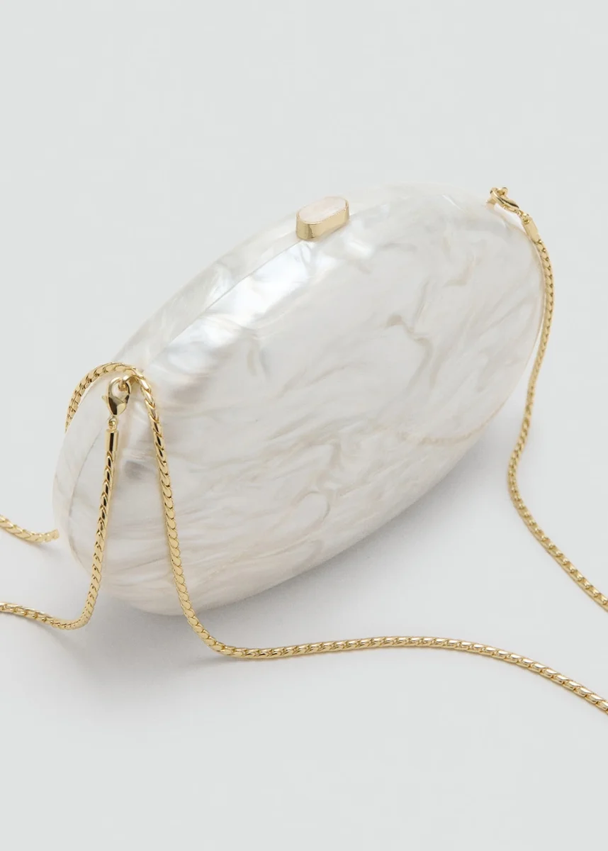 Malá velikost. Pevný design. Styl psaníčka. Dlouhý odnímatelný řetízkový popruh. Zapínání na patent. Vnitřní podšívka. 21 x 14 x 5 cm (délka x výška x šířka)