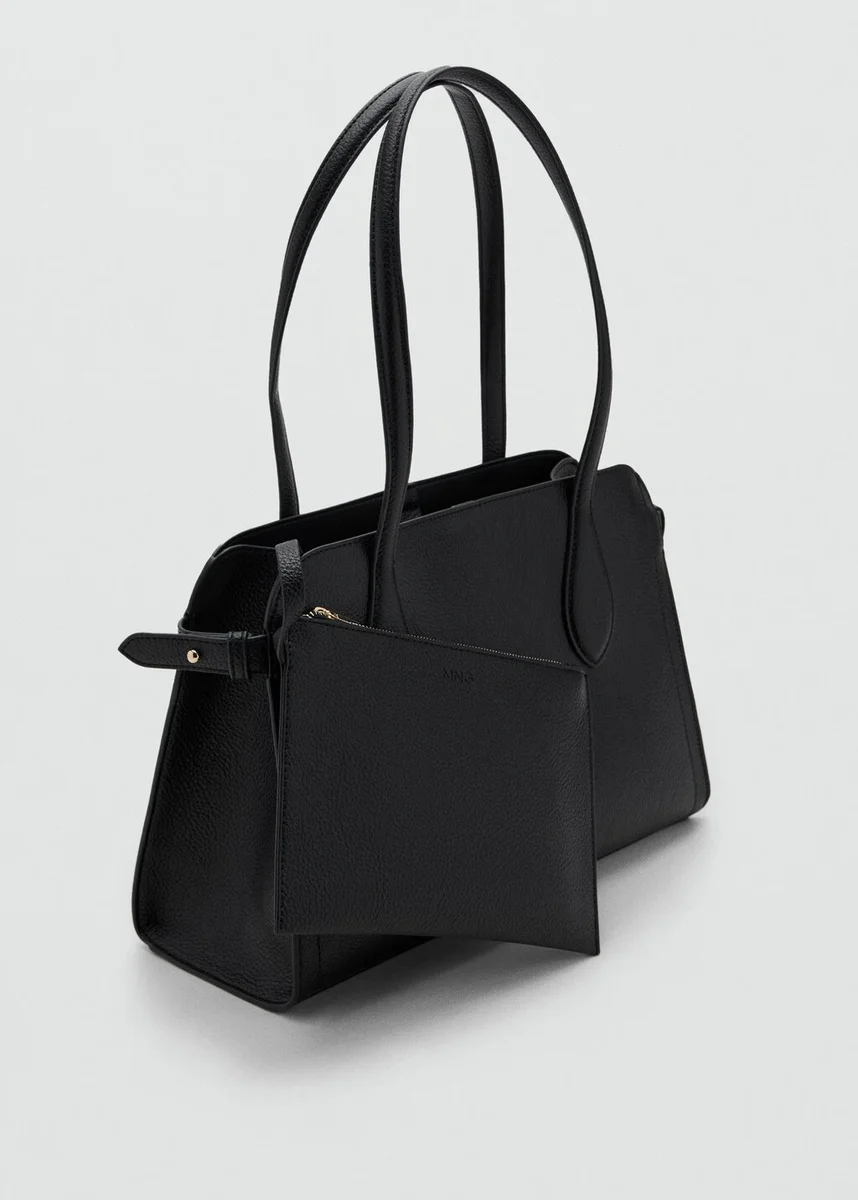 Malá velikost. Efekt zrnitosti kůže. Dvě ramenní popruhy. Malá vnitřní taška. Nastavitelné boční popruhy s knoflíkem. Karabina.