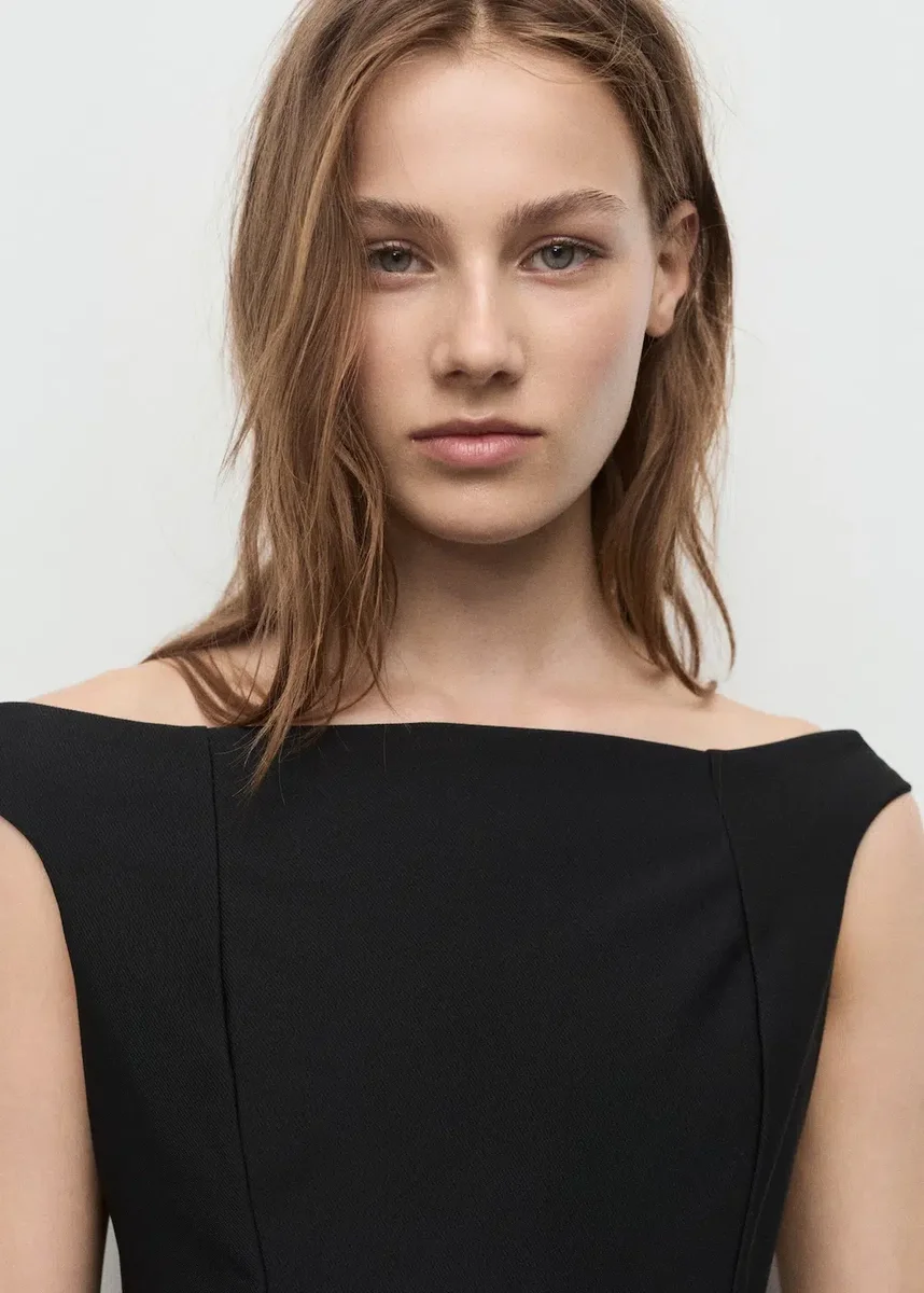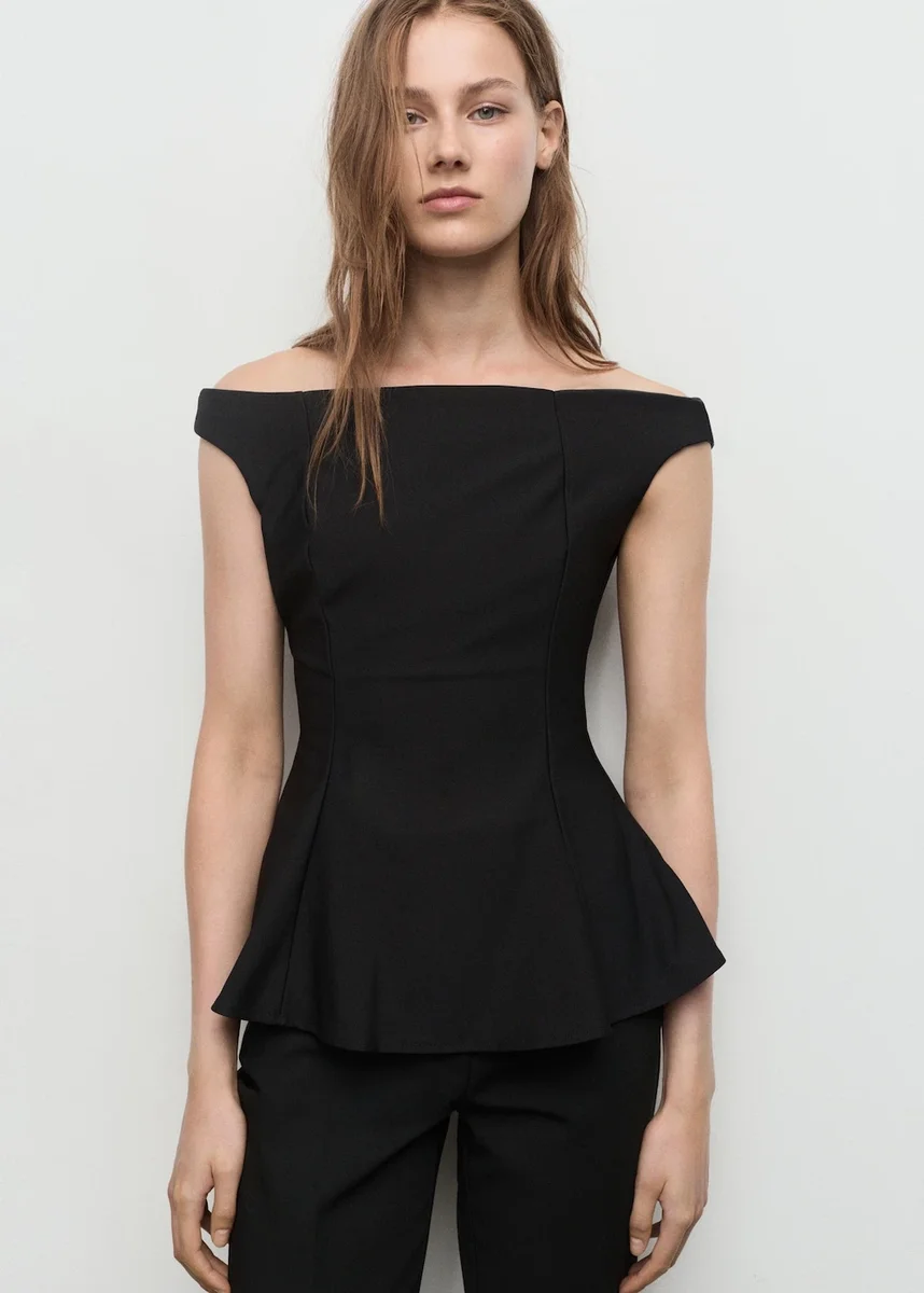 Tento top s přiléhavým střihem a peplumem má bez ramínek a zapínání na boční zip.
