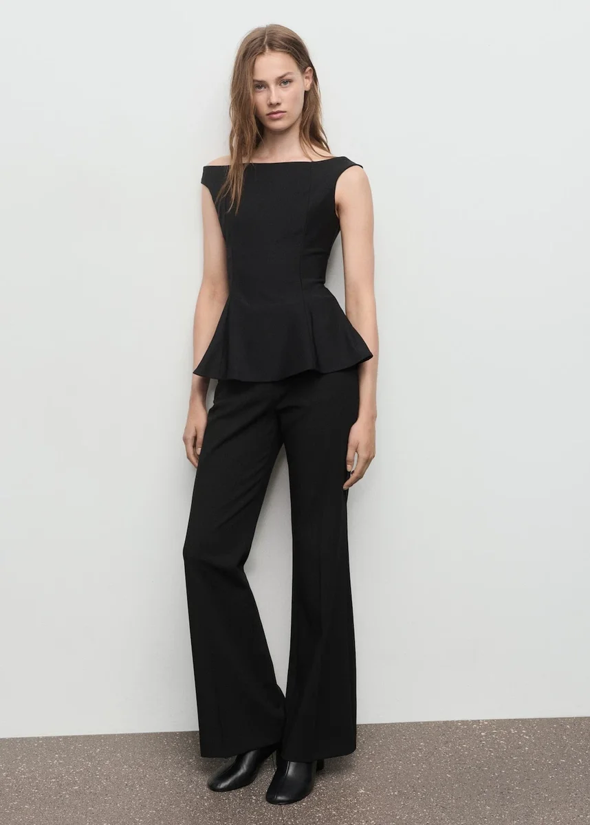 Tento top s přiléhavým střihem a peplumem má bezramínkový výstřih a zapínání na zip na boku.