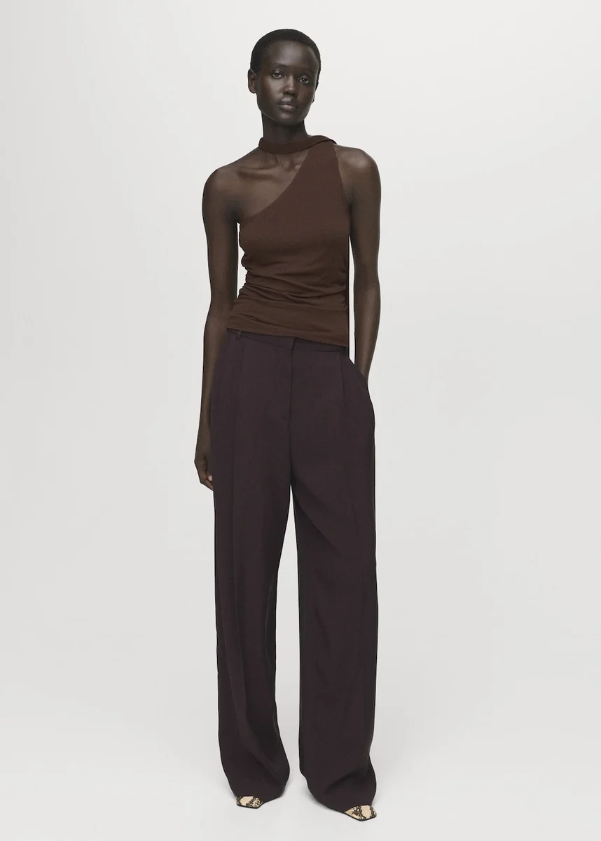 Tento top s přiléhavým střihem má asymetrický výstřih zdobený šátkem a bočními řaseními.
