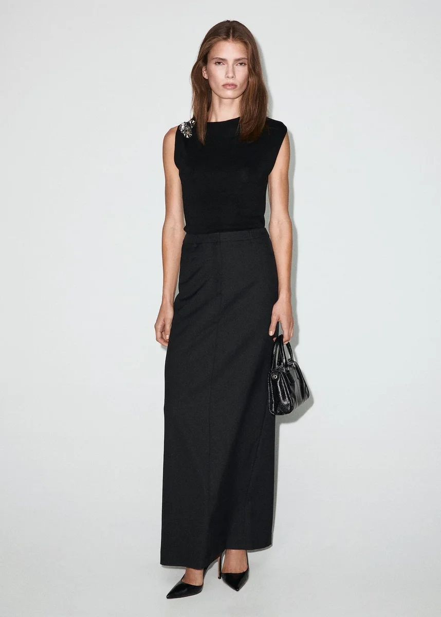Tento rovný model z jemné pleteniny má kulatý výstřih a krátké rukávy. Metalická květinová ozdoba dodává modelu osobitý vzhled. K dispozici v nadměrných velikostech