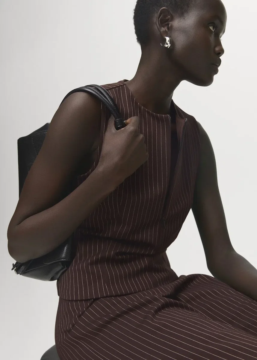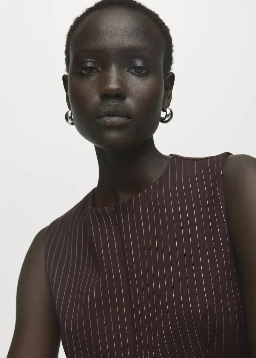 Tento top má přiléhavý střih, kulatý výstřih a široká ramínka. Přední zapínání na zip dotváří celkový vzhled a dodává mu moderní nádech. Součástí je i kalhoty ve stejném designu.