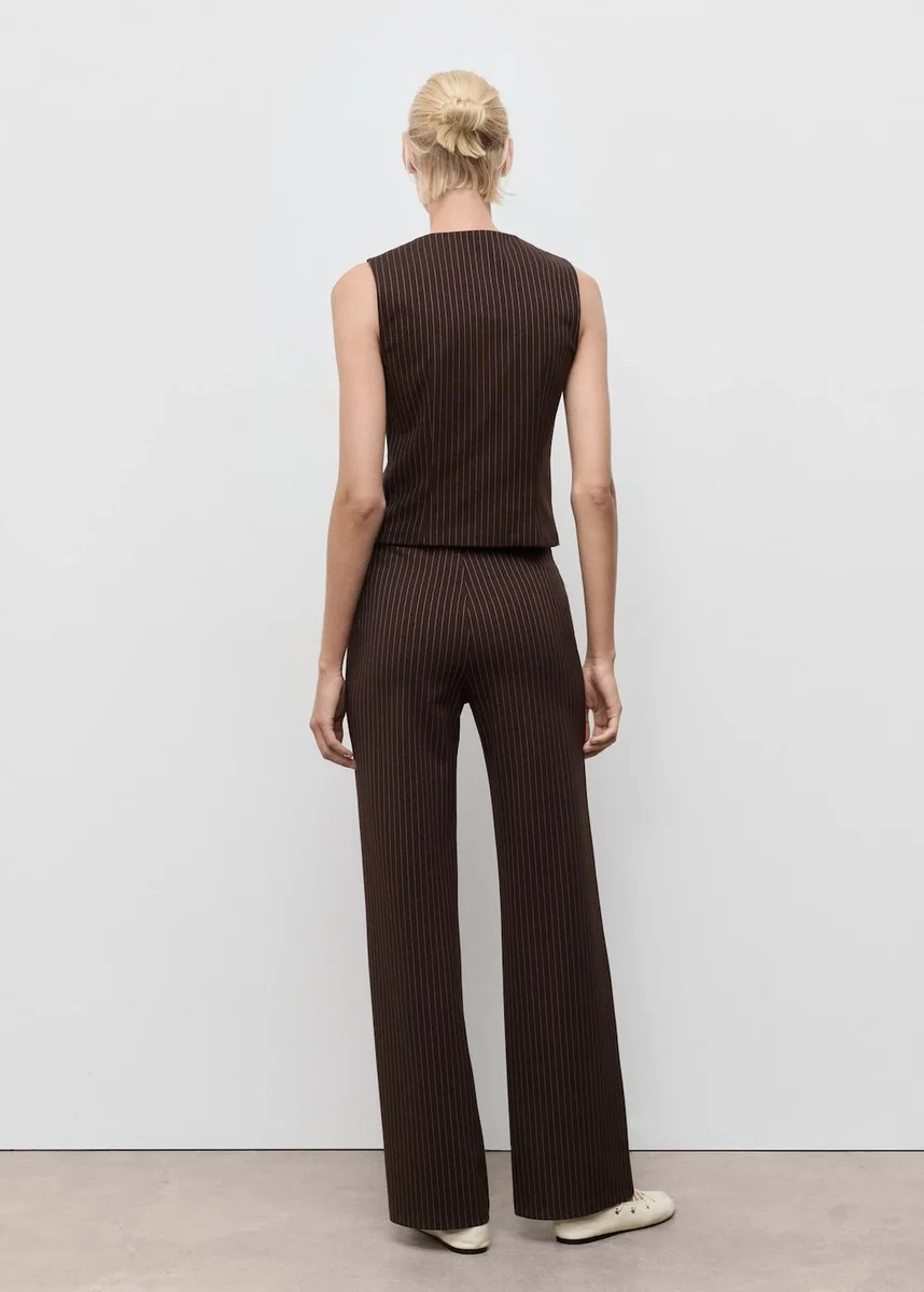 Tento top s přiléhavým střihem má kulatý výstřih a široká ramínka. Zapínání na zip vpředu dotváří celkový vzhled a dodává mu moderní vzhled. Součástí je i kalhoty ve stejném designu.