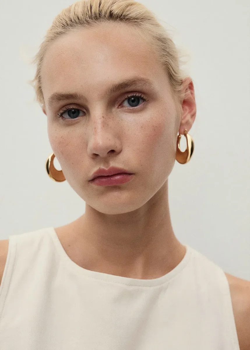 Tento bavlněný top v denimovém stylu se vyznačuje minimalistickým designem. Jeho kulatý výstřih a bezrukávový střih podtrhují jeho klasickou siluetu. V horní části trupu přiléhá a mírně se rozšiřuje, čímž vytváří efekt áčkového střihu. Navíc je k němu k dispozici i ladící kalhoty, které dotvářejí celkový denimový look.