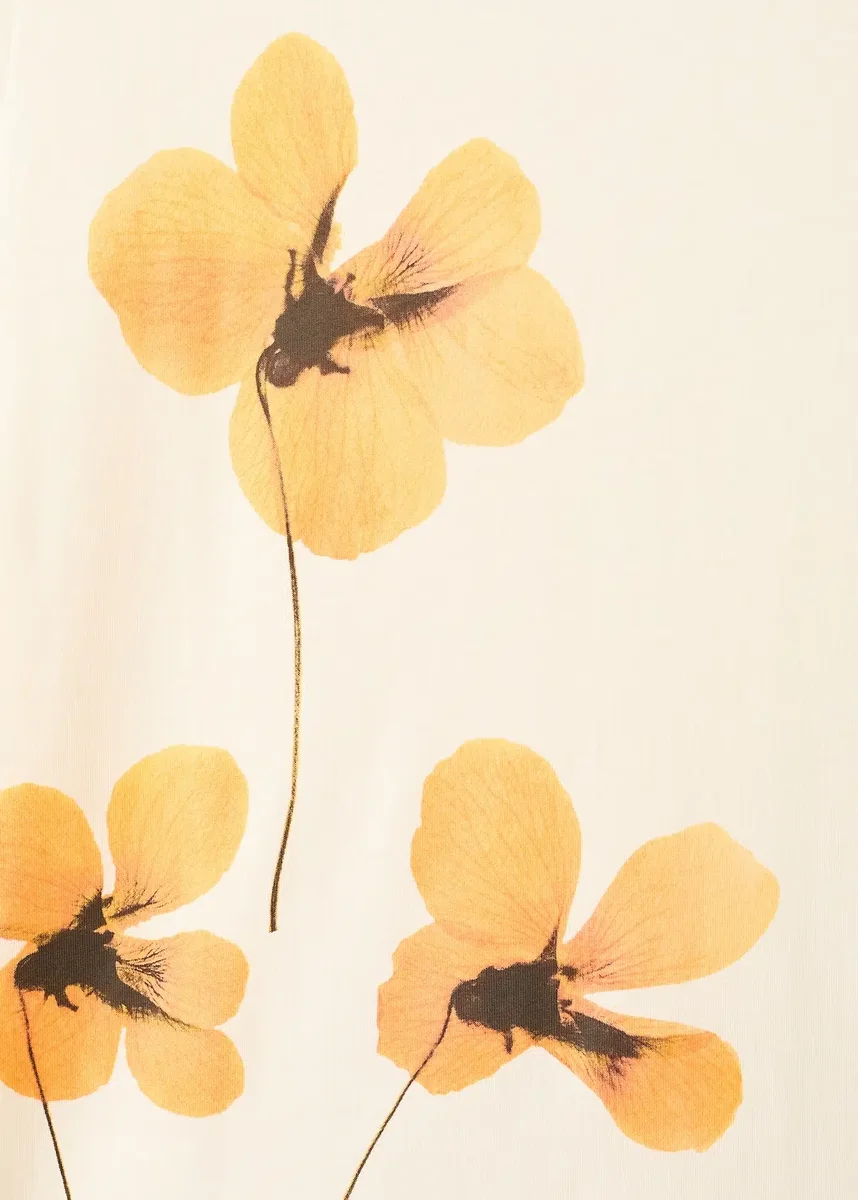 Bavlněná tkanina. Rovný střih. Květinový potisk. Kulatý výstřih. Krátké rukávy