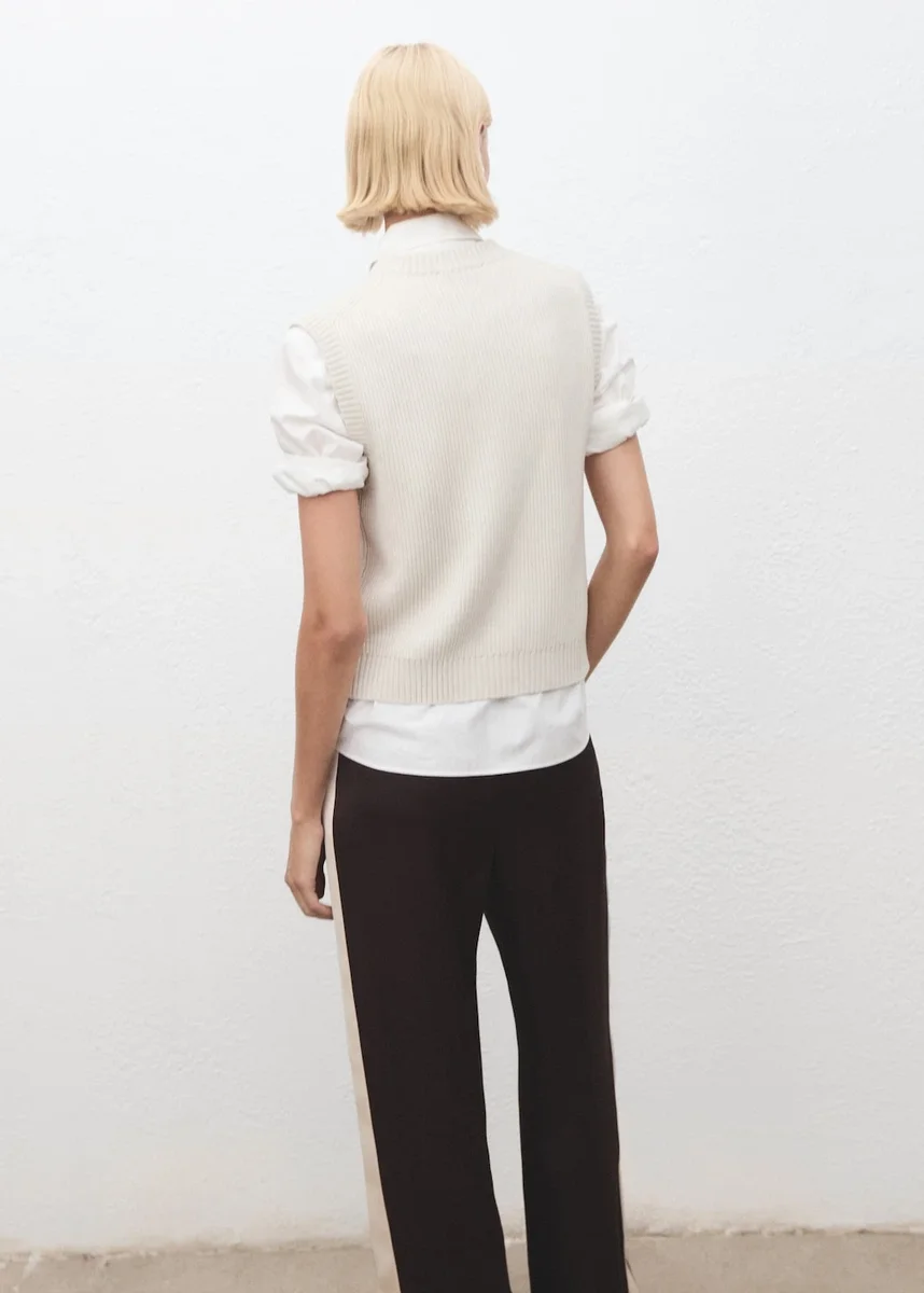 Žebrovaná pletenina. Střední délka. Rovný střih. Kulatý výstřih. Zapínání na knoflíky vpředu. Žebrované lemy. Zapínání na zip vpředu. Pletenina s copánkovým vzorem. Standardní střih