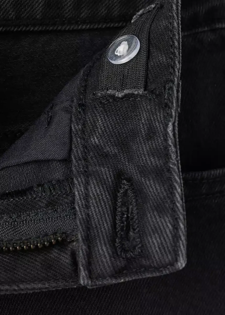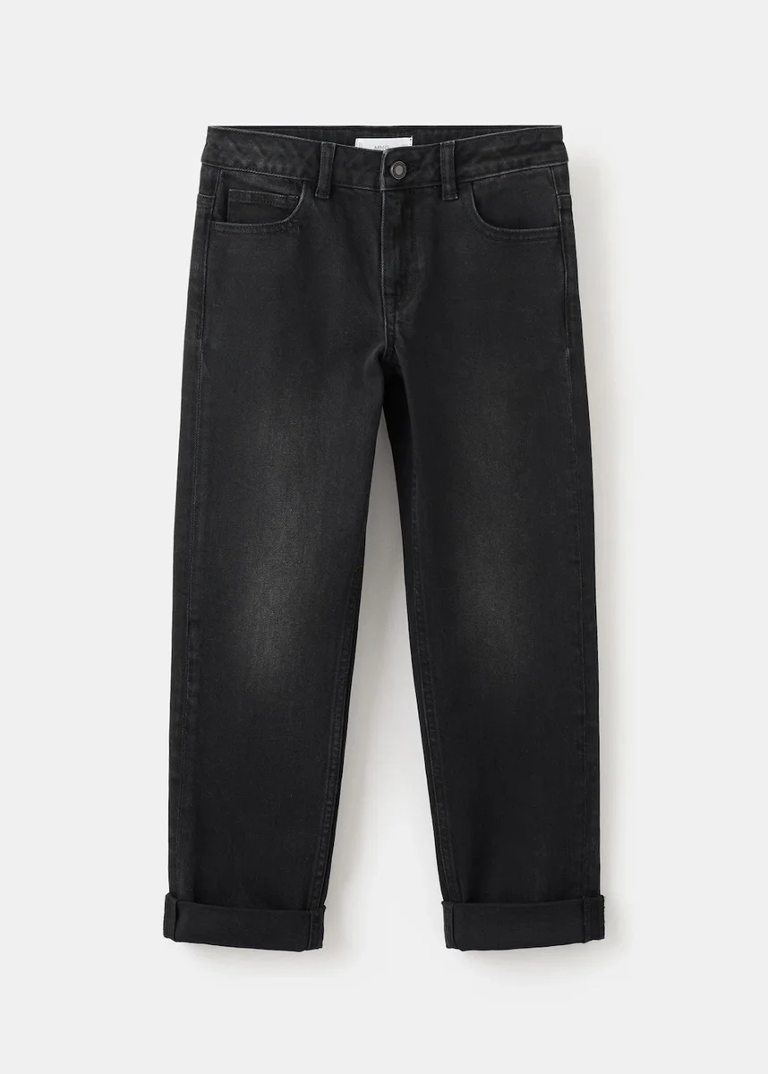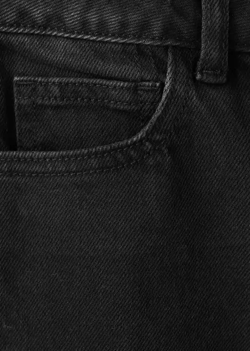 Bavlněná tkanina. Elastická tkanina. Dlouhý střih. Rovný střih. Poutka na opasek. Zapínání na zip a knoflík. Dvě boční kapsy. Dvě našité kapsy vzadu. Lem s manžetami. Zpátky do školy.