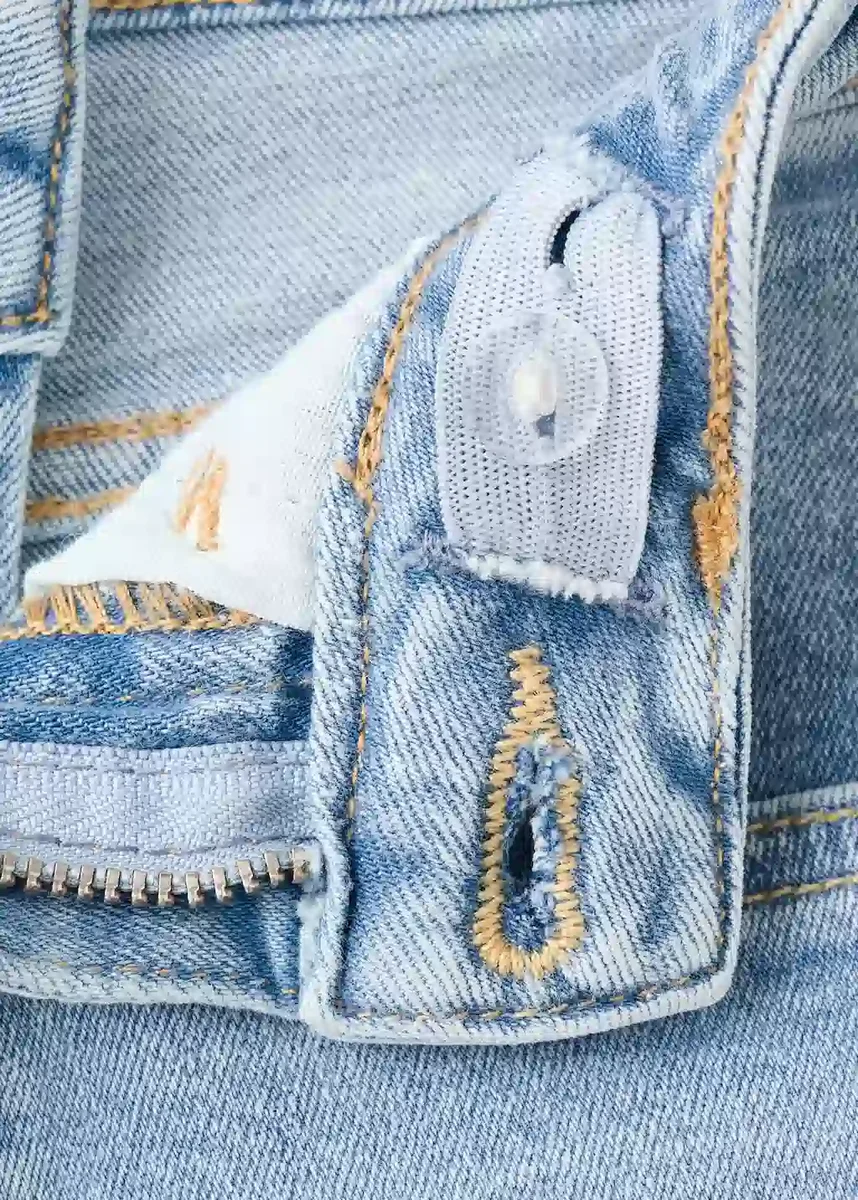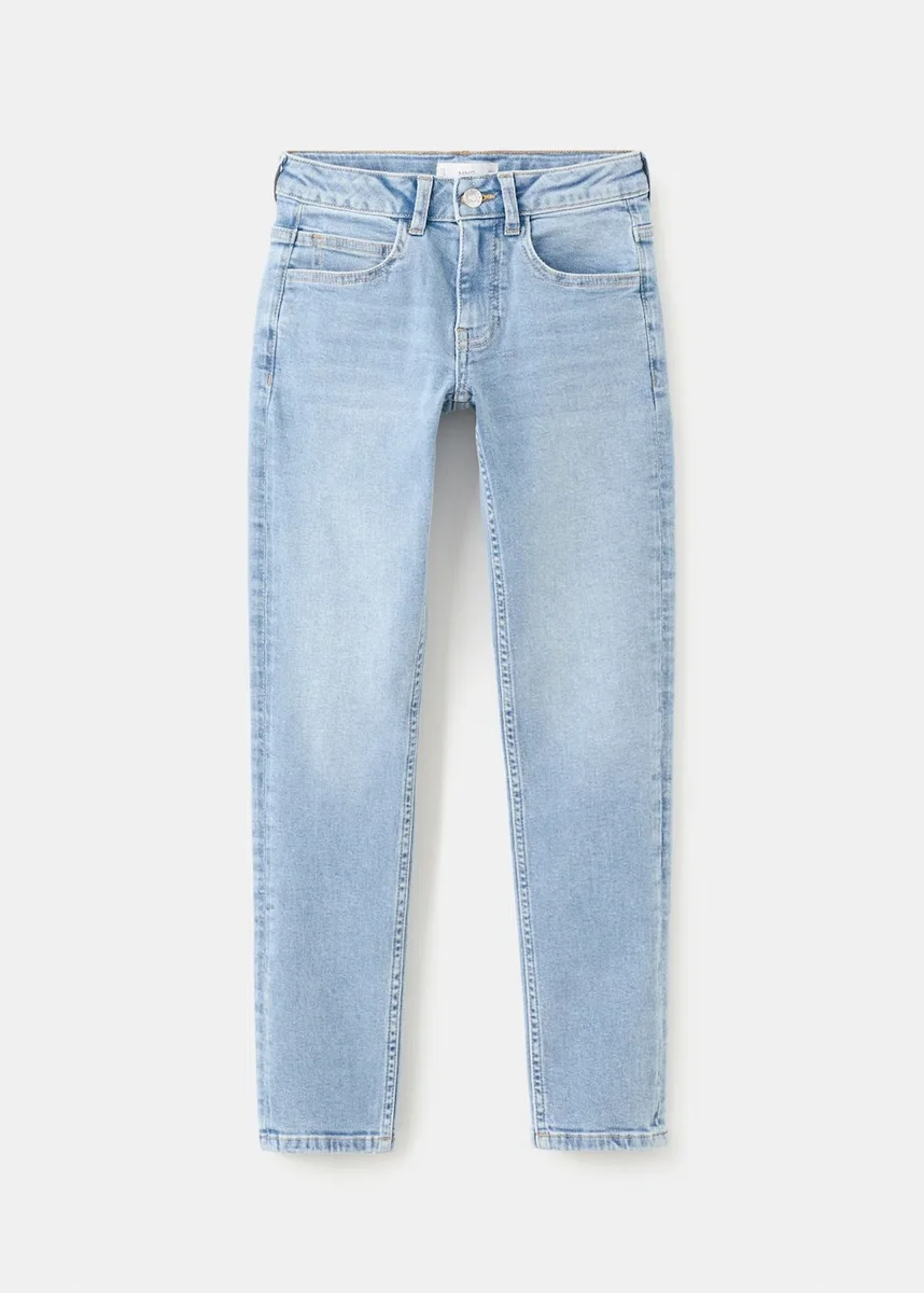 Standardní délka. Normální výška pasu. Středně plochá struktura. Bavlněná tkanina. Pružná tkanina. Dlouhý střih. Poutka na opasek. Zapínání na zip a knoflík. Dvě boční kapsy. Dvě našité kapsy vzadu. Úzký střih.