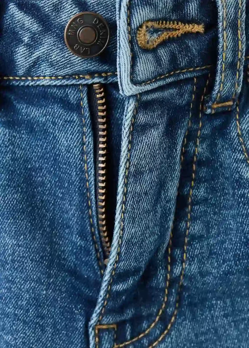 Standardní délka. Normální výška pasu. Středně plochá struktura. Bavlněná tkanina. Pružná tkanina. Dlouhý střih. Poutka na opasek. Zapínání na zip a knoflík. Dvě boční kapsy. Dvě našité kapsy vzadu. Úzký střih