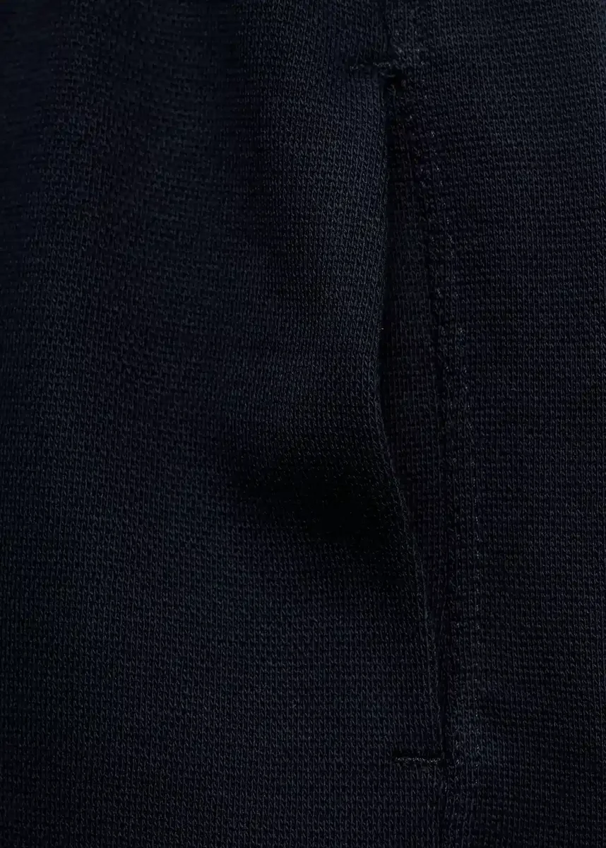 Piqué tkanina. 100% bavlna. Dlouhý střih. Jednobarevný design. Elastický pas se stahovací šňůrkou. Lem s elastickou páskou. Kapsy s lemováním na zadní straně.