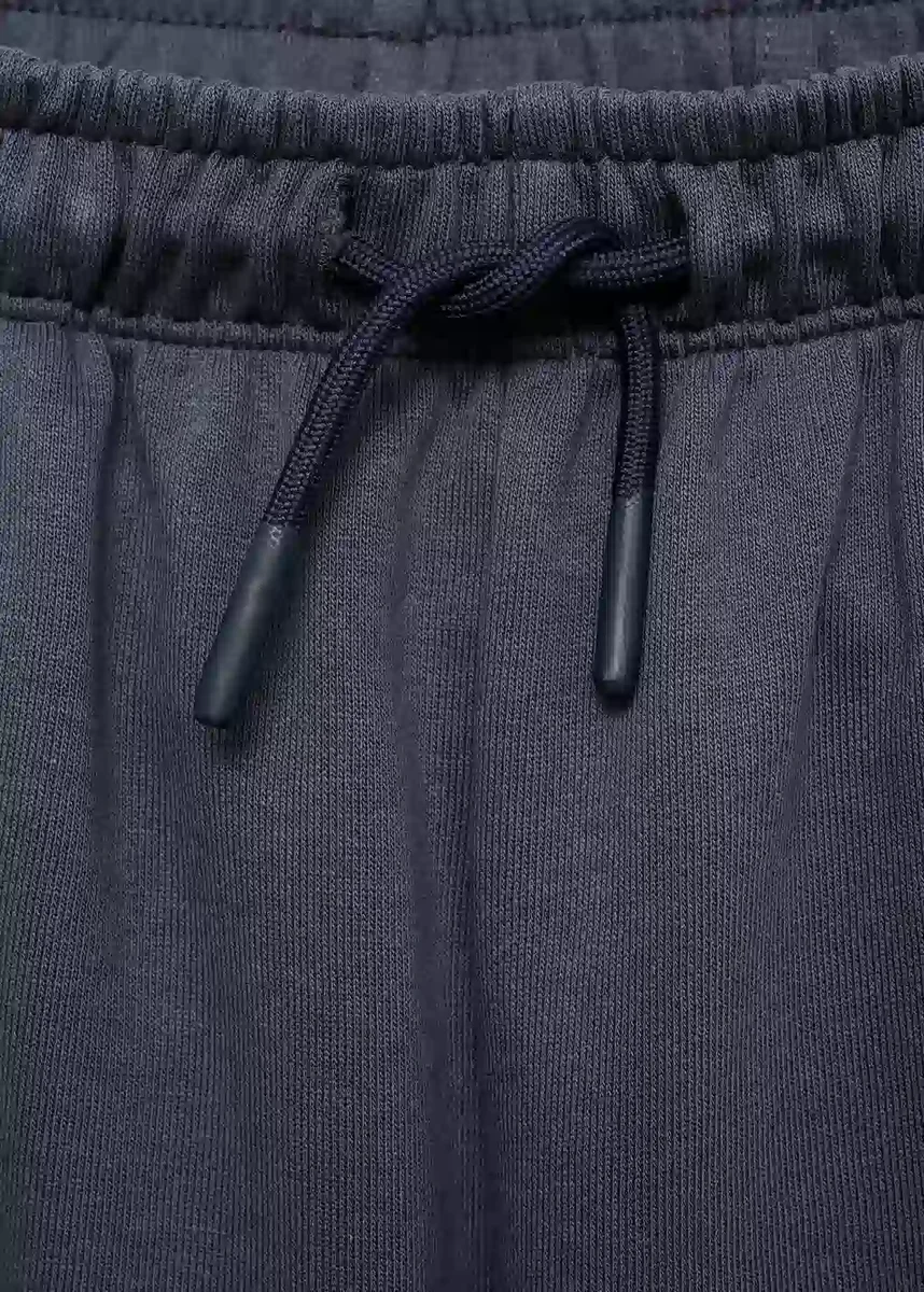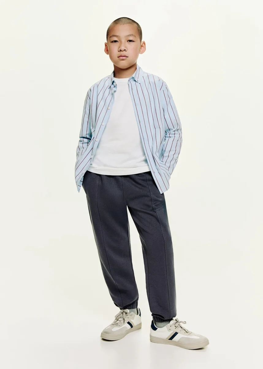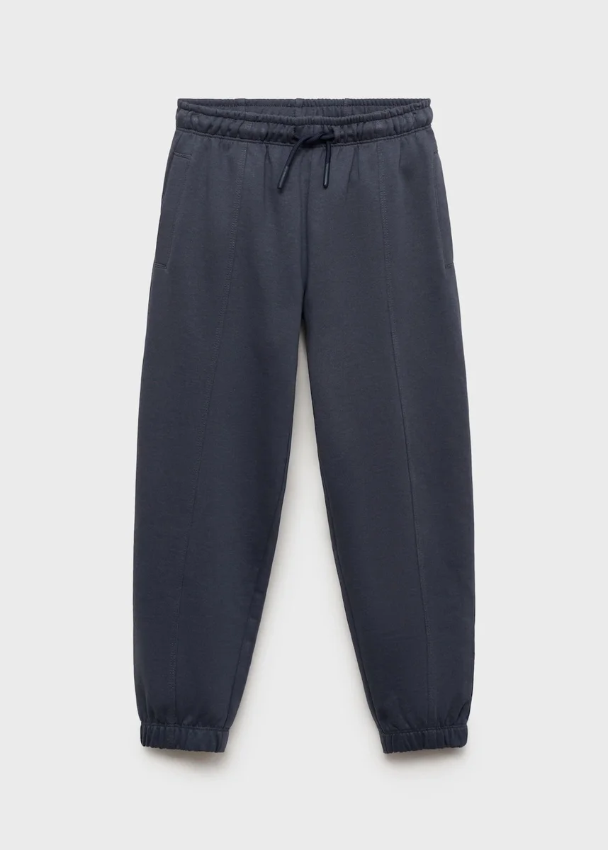 Bavlněná tkanina. Dlouhý střih. Rovný střih. Jogger styl. Elastický pas. Dvě boční kapsy. Kapsa s lemováním na zadní straně. Elastický lem. Zpátky do školy.