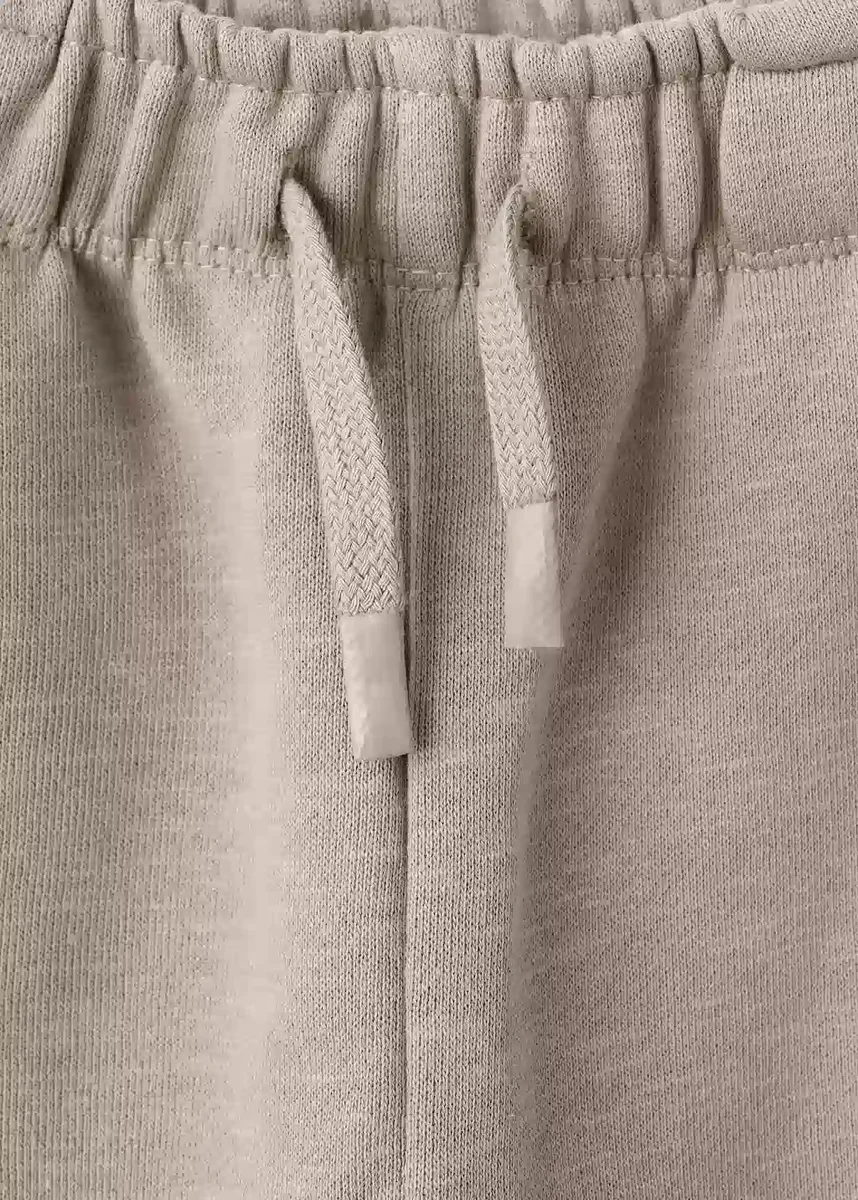 Bavlněná tkanina. Silueta Jogger. Elastický pas se stahovací šňůrkou. Dvě boční kapsy. Měkký povrch. Prošívaný bavlněný vnitřek.