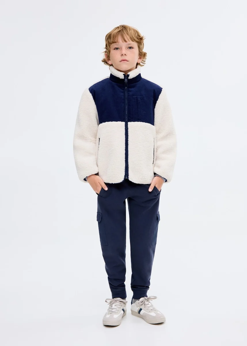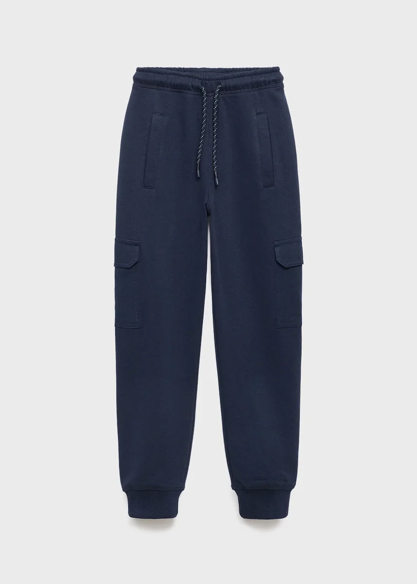 Bavlněná tkanina. Kombinovaná tkanina. Dlouhý střih. Joggerový střih. Elastický pas se stahovací šňůrkou. Dvě boční kapsy. Dvě kapsy cargo. Kapsa s lemováním na zadní straně