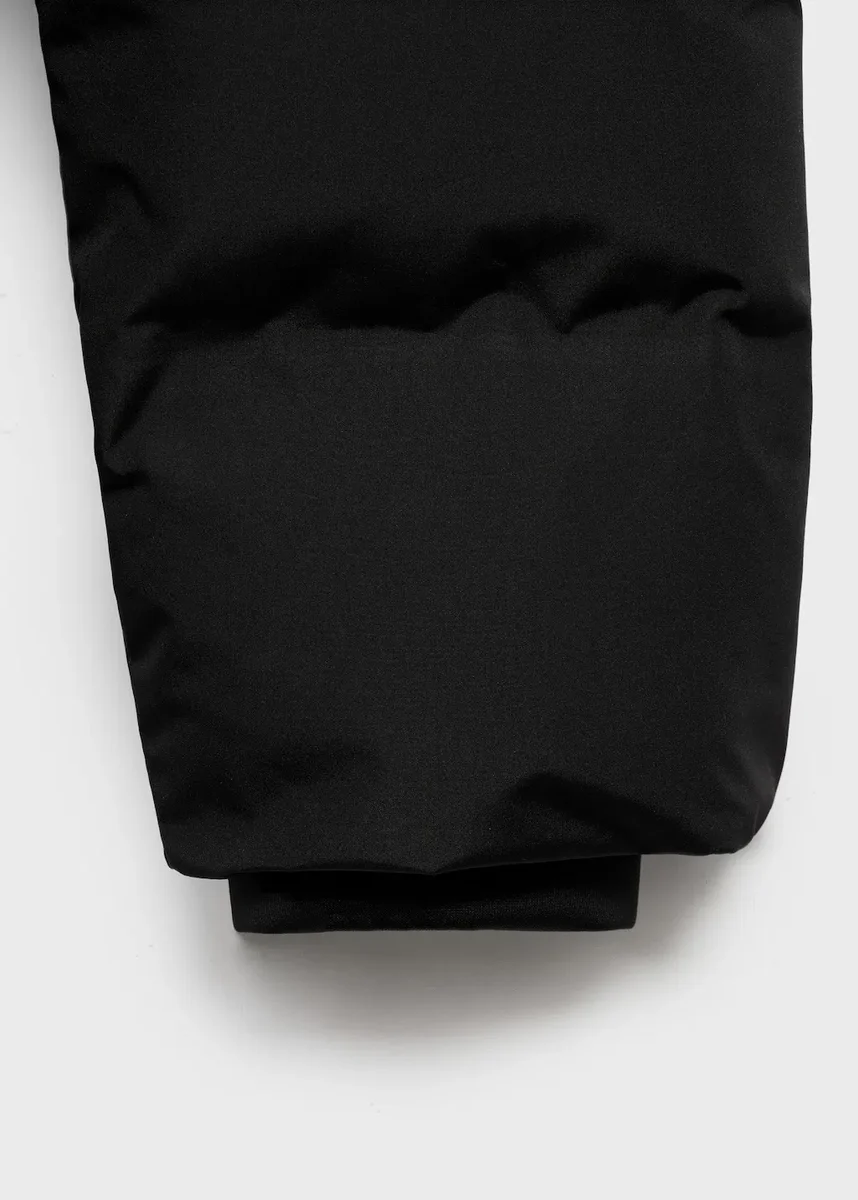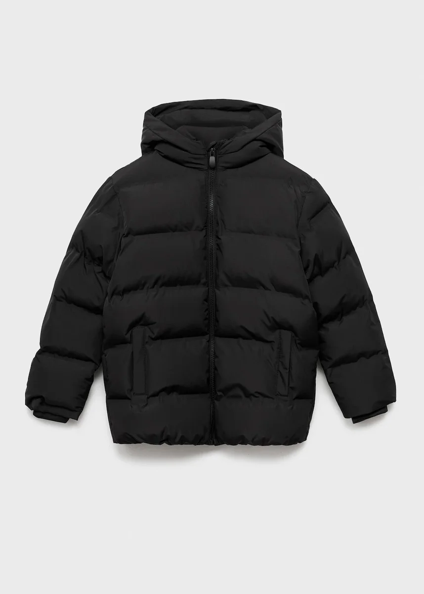Prošívaná tkanina. Polyesterová tkanina. Rovný střih. S kapucí. Dlouhé rukávy s elastickými manžetami. Zapínání na zip. Dvě boční kapsy.