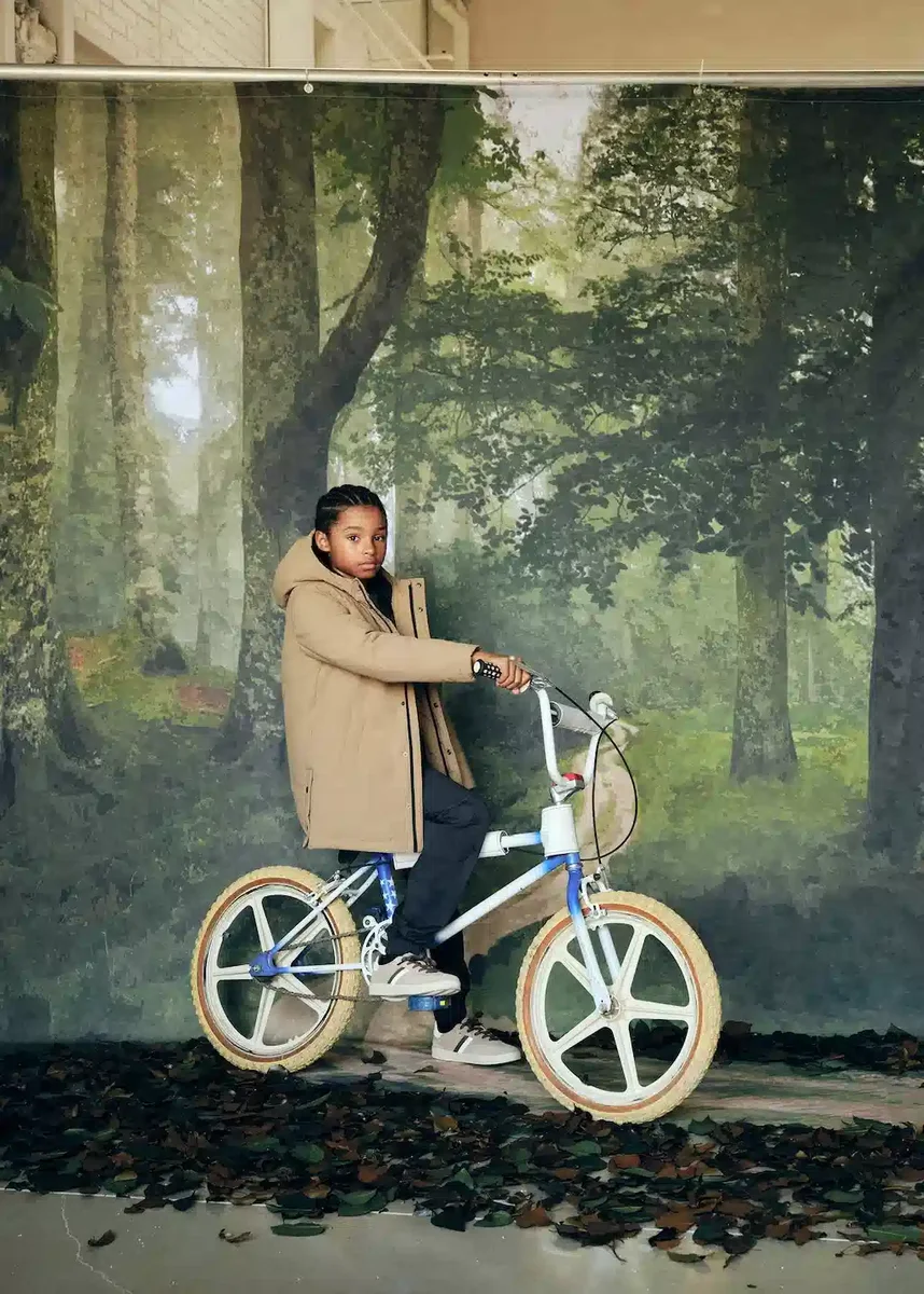 Prošívaná tkanina. Polyesterová tkanina. Rovný střih. S kapucí. Dlouhé rukávy. Zapínání na zip a knoflíky vpředu. Dvě boční kapsy.