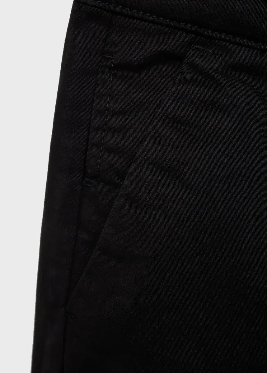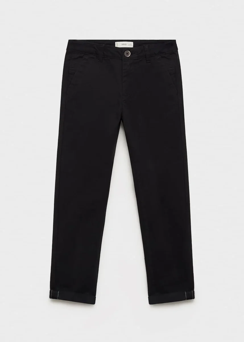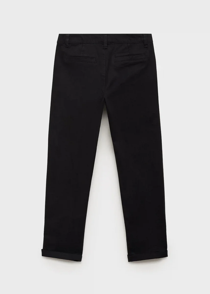Bavlněná tkanina. Pružná tkanina. Dlouhý střih. Rovný střih. Jednobarevný design. Poutka na opasek. Zapínání na zip a knoflík. Pas s nastavitelnou vnitřní stahovací šňůrkou. Zadní kapsy. Ohnutý lem. Halloweenová kolekce