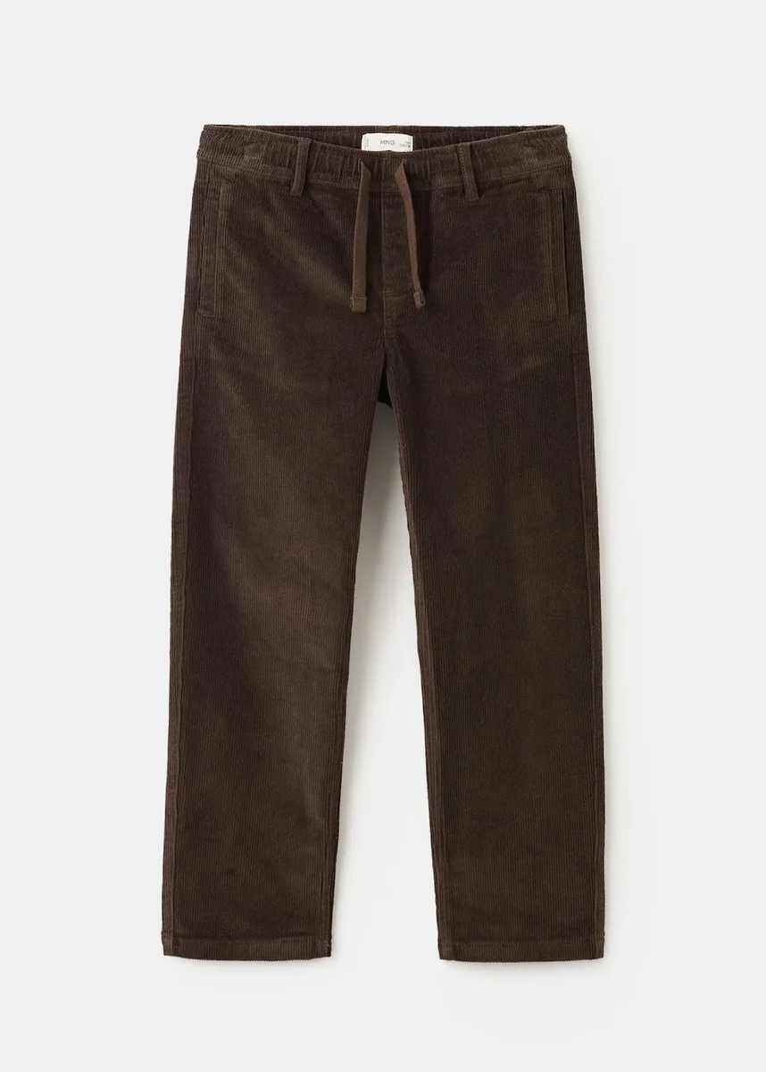 Tyto rovné kalhoty jsou vyrobeny z bavlny a manšestru a mají elastický pas se stahovací šňůrkou a poutky na pásek. Má dvě boční kapsy a dvě zadní kapsy s lemováním.