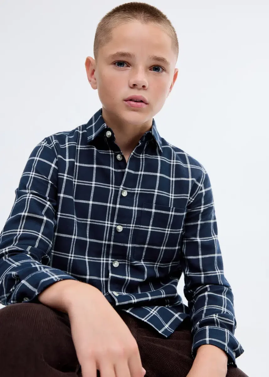 100% bavlna. Kostkovaný vzor. Rovný střih. Košilový límec. Dlouhé rukávy s manžetami na knoflíky. Zapínání na knoflíky vpředu.