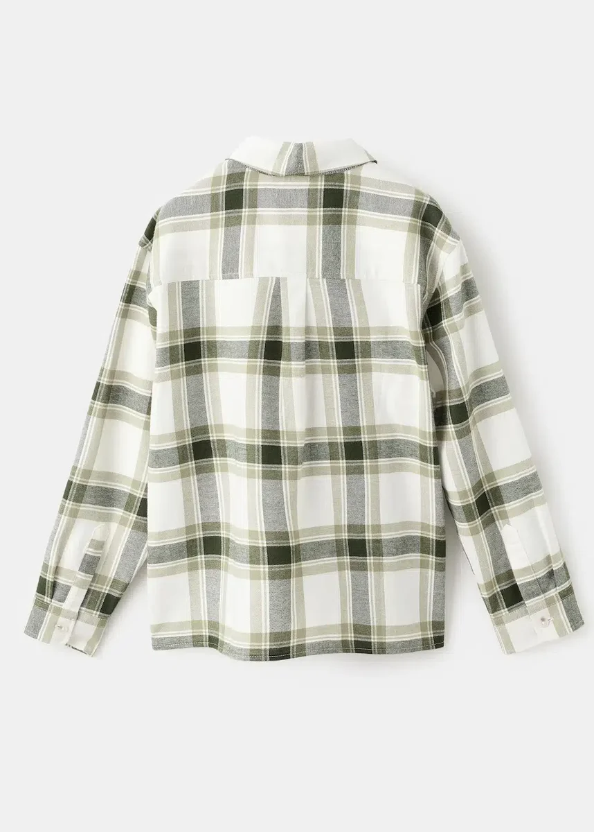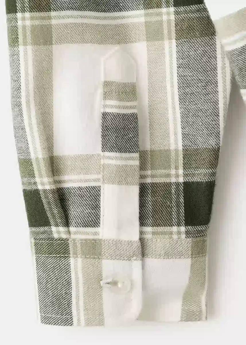 100% bavlna. Rovný střih. Kostkovaný vzor. Košilový límec. Zapínání na knoflíky vpředu. Dlouhé rukávy s manžetami na knoflíky.