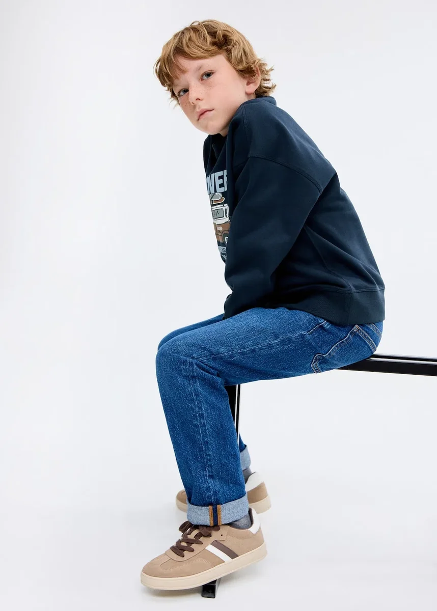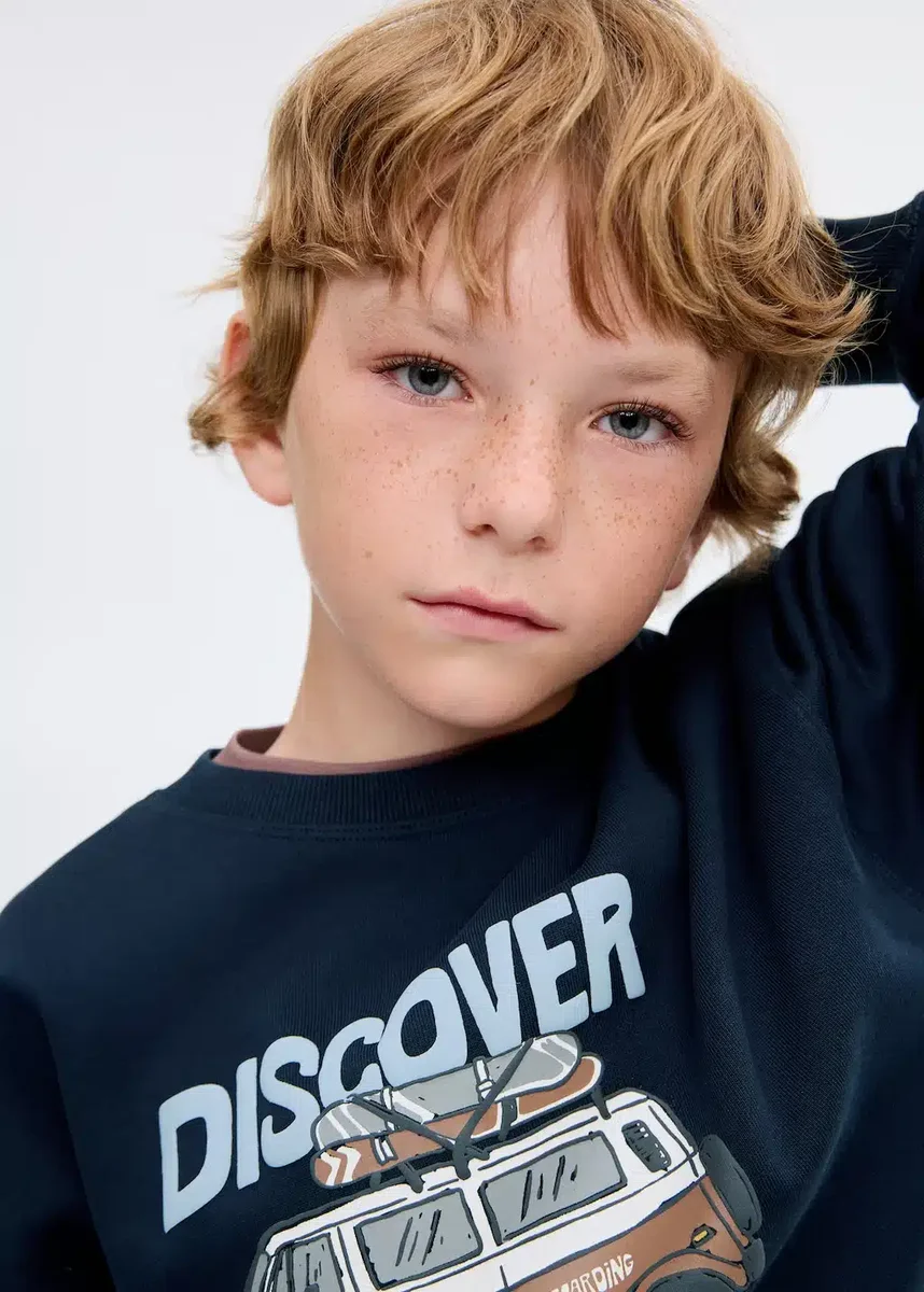 Tento oděv je vyroben ze 100% bavlny a má rovný střih s potiskem a vzorem na přední straně. Má kulatý výstřih, dlouhé rukávy a žebrované detaily na krku, manžetách a lemu.