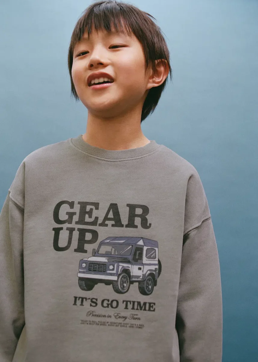 Tento oděv je vyroben ze 100% bavlny a má rovný střih s potiskem. Kulatý výstřih a dlouhé rukávy doplňují žebrované detaily na krku, manžetách a lemu.