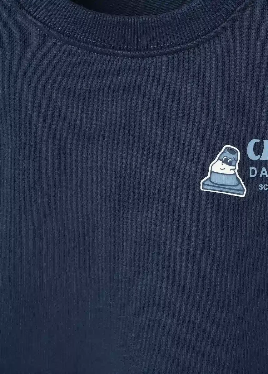 Tento oděv je vyroben ze 100% bavlny a má rovný střih s potiskem. Kulatý výstřih a dlouhé rukávy doplňují žebrované lemy na límci, manžetách a spodním lemu. Na přední straně má potisk a na zadní straně kresbu.