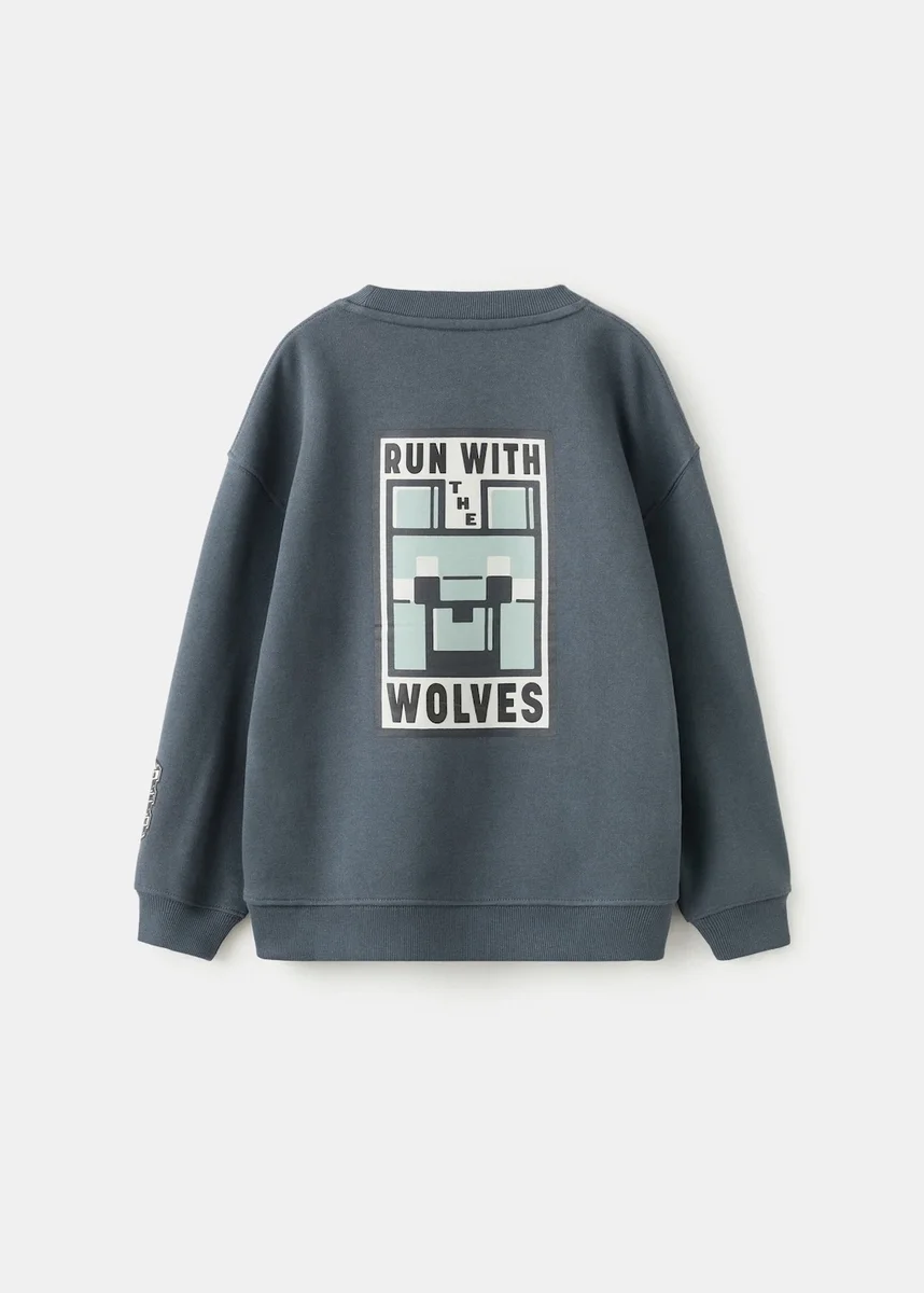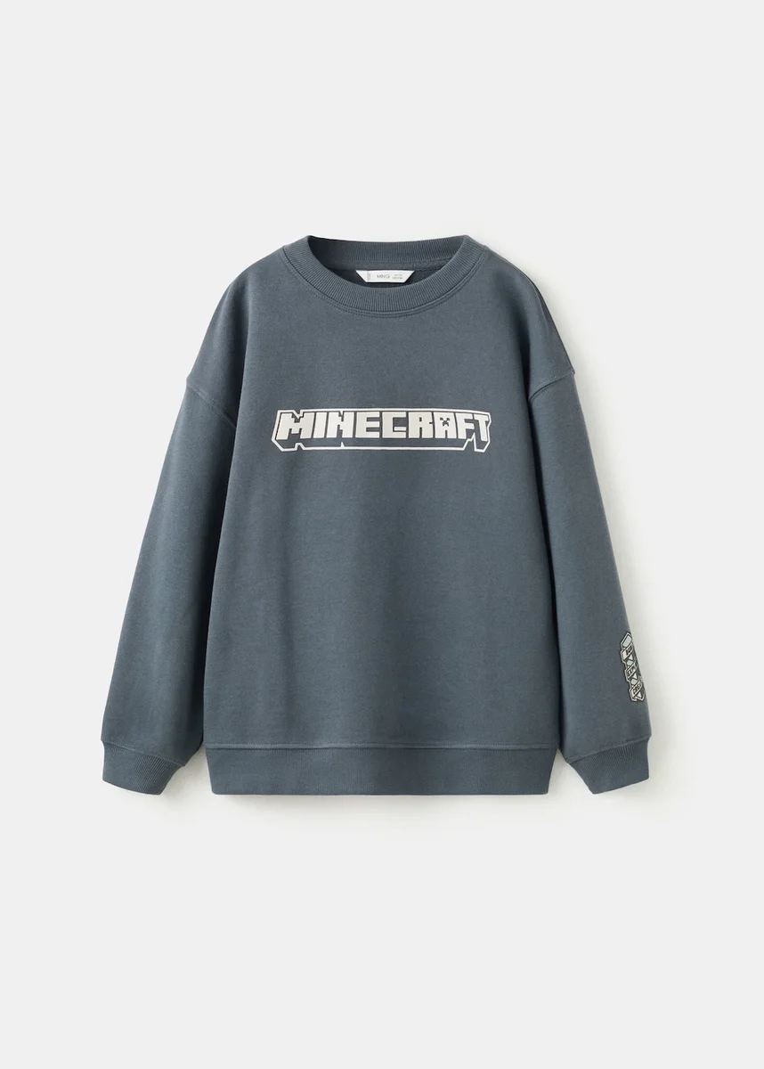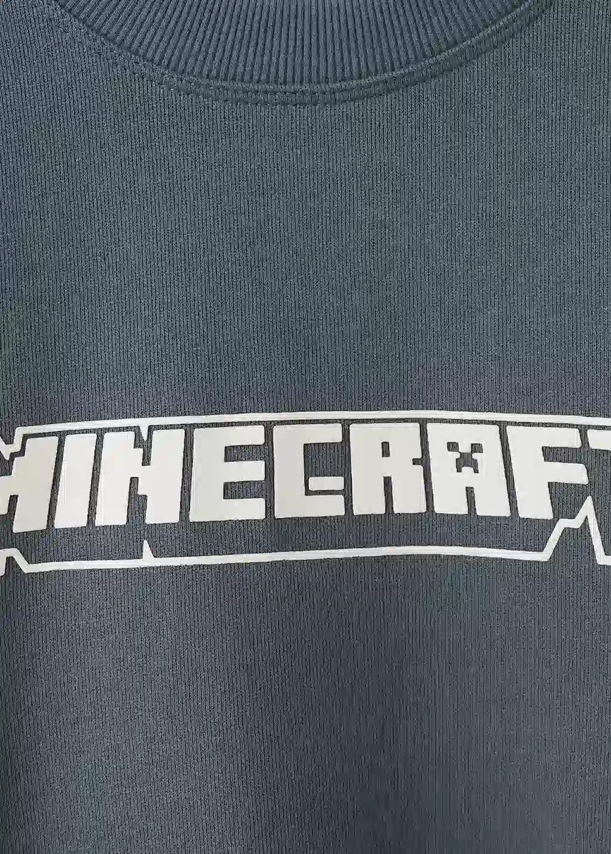 Bavlněná tkanina. Prošívaná bavlněná podšívka. Potisk. Design Minecraft. Kulatý výstřih. Dlouhé rukávy. Žebrované lemy. Licence.
