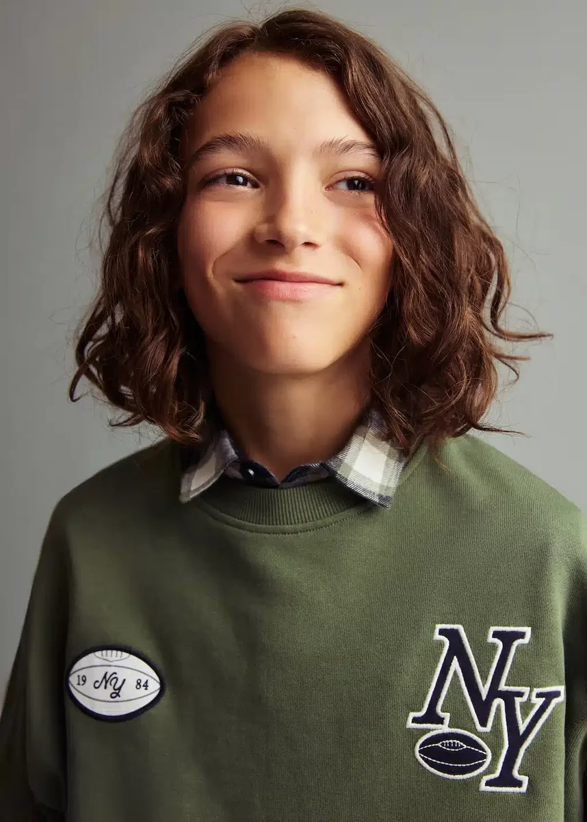 Tento oděv je vyroben ze 100% bavlny a má rovný střih s výšivkou na přední straně a potiskem na zadní straně. Kulatý výstřih, dlouhé rukávy a žebrované detaily na krku, manžetách a lemu dotvářejí jeho styl.