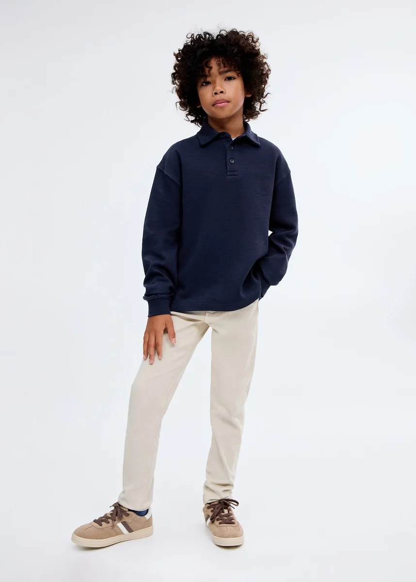 Tento oděv je vyroben ze 100% bavlny a vyznačuje se oversized střihem a jednoduchým designem. Má rolák s knoflíkovým zapínáním a dlouhé rukávy, které zajišťují pohodlí a styl při každém nošení.