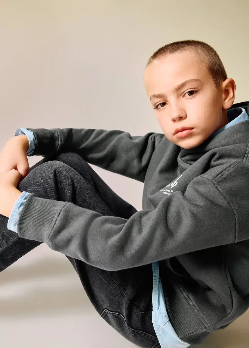 Tento oděv je vyroben z bavlněné tkaniny a má rovný střih s kapucí a dlouhými rukávy. Má našité kapsy a potisk na přední straně, doplněný kresbou na zadní straně.