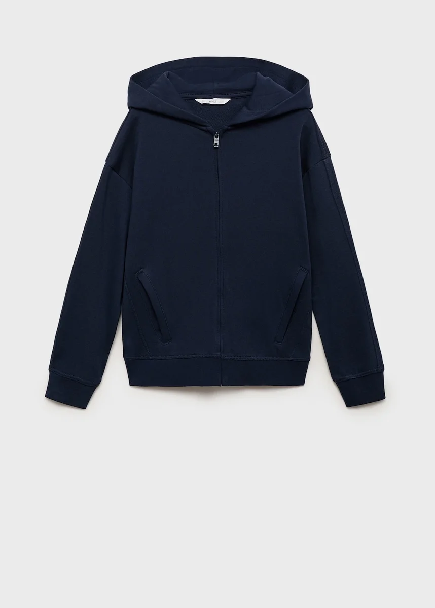 100% bavlna. Rovný střih. Jednobarevný design. S kapucí. Dlouhé rukávy. Zapínání na zip vpředu.