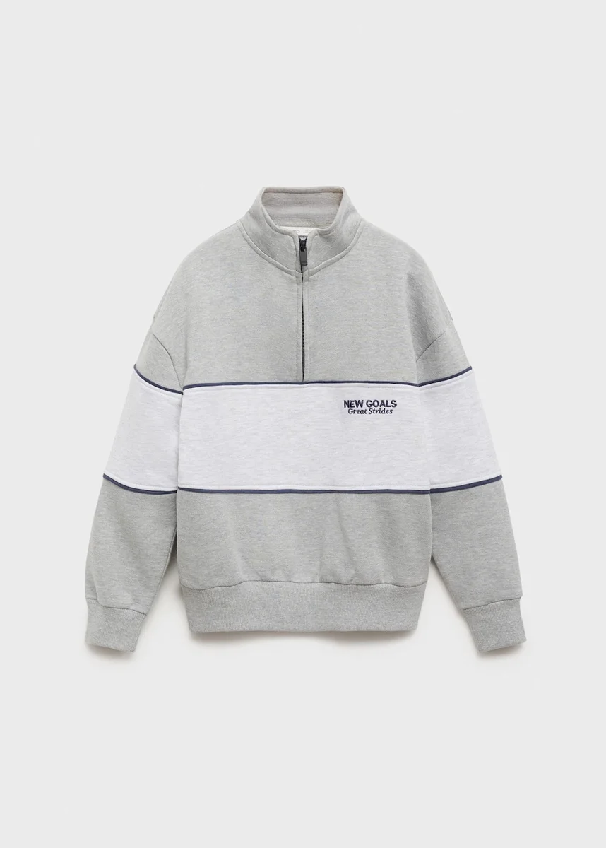 Bavlněná tkanina. Dvoubarevný design. Rovný střih. Perkinsový výstřih se zipem. Dlouhé rukávy. Black Friday
