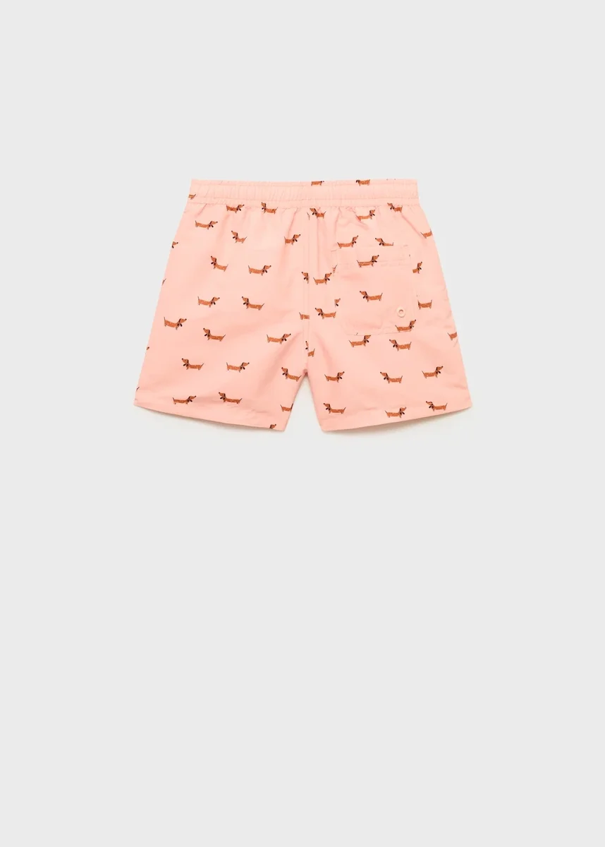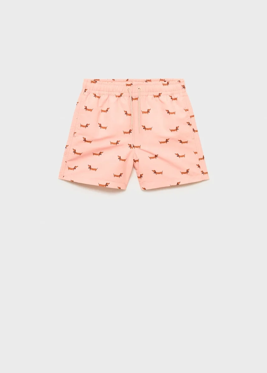 Vnitřní podšívka. Design se štěňátky. Krátký střih. Rovný střih. Elastický pas se stahovací šňůrkou. Nášivková kapsa.