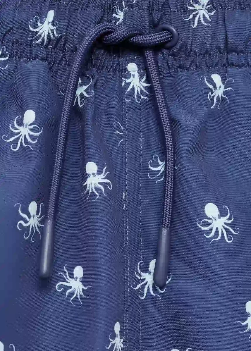 Vnitřní podšívka. Rovný střih. Krátký střih. Potisk chobotnice. Elastický pas. Stahovací šňůrka. Přední našitá kapsa. Propagační produkt