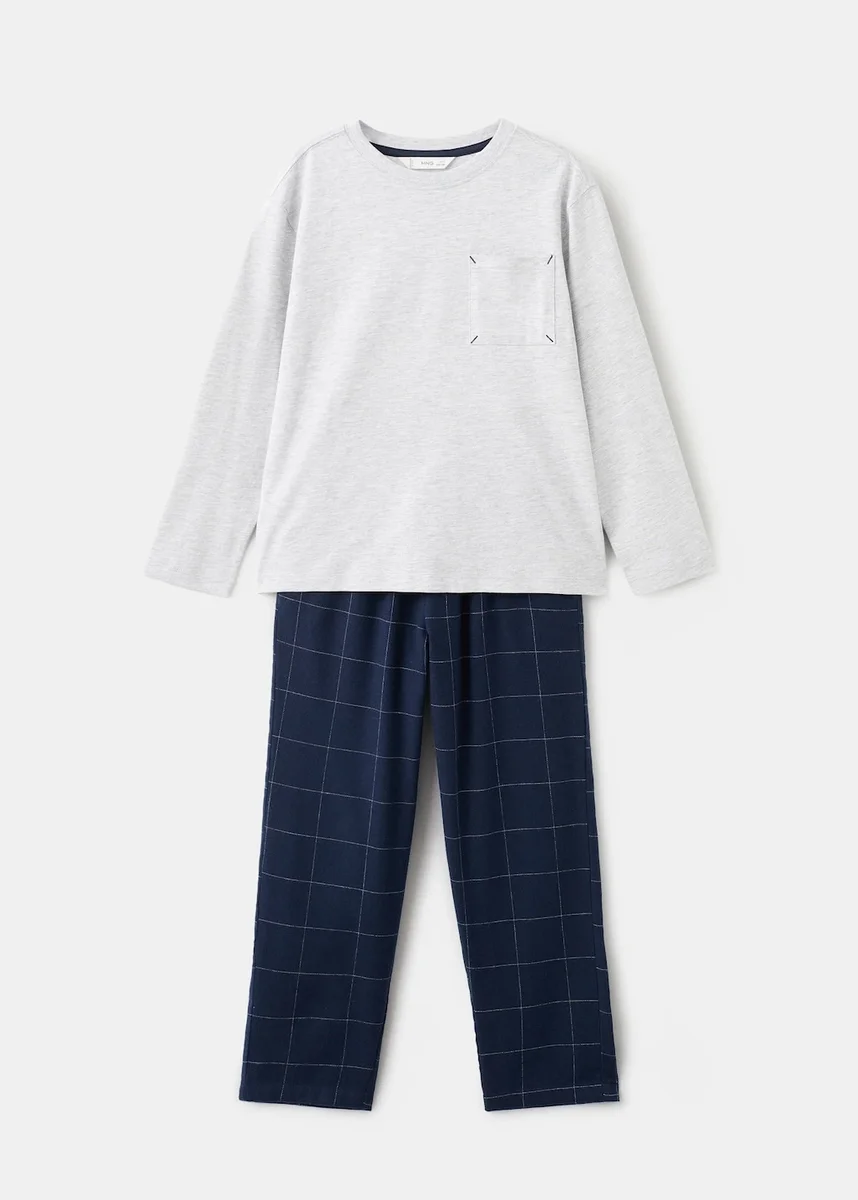 Sada trička a pyžamových kalhot. Tričko s dlouhým rukávem. Kostkovaný vzor. Černý pátek