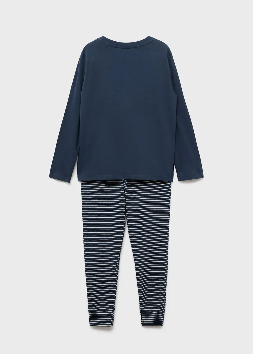 100% bavlna. Texturovaný design. Sportovní design. Potisk na přední straně. Kulatý výstřih. Dlouhé rukávy. Pruhované dlouhé kalhoty. Elastický pas se stahovací šňůrkou.