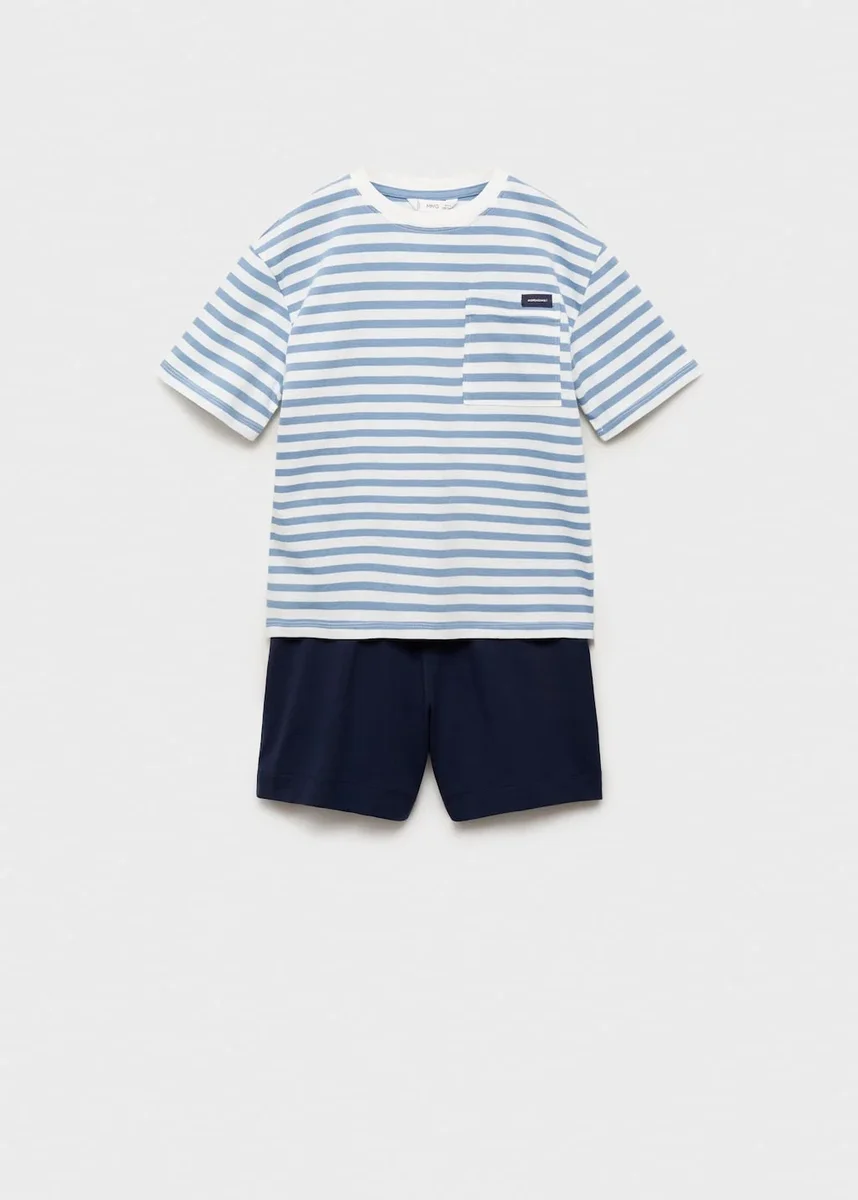 Sada trička s krátkým rukávem a krátkých pyžamových kalhot. 100 % bavlna. Pruhovaný design. Tričko. Kulatý výstřih. Nášivková kapsa na přední straně. Šortky. Elastický pas se stahovací šňůrkou. Propagační produkt
