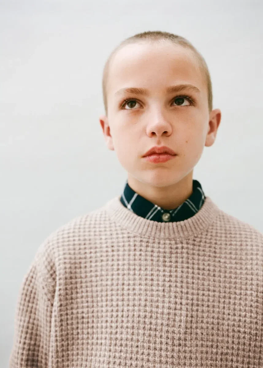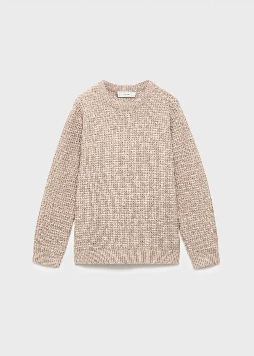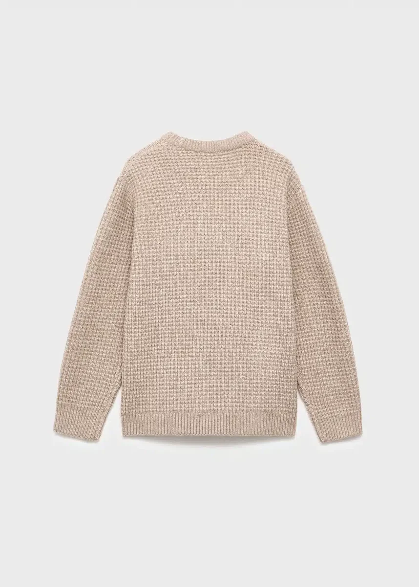 Hrubá pletenina. Vlněná tkanina. Rovný střih. Kulatý výstřih. Dlouhé rukávy. Žebrovaný výstřih, manžety a lem. Vánoční kolekce. Černý pátek.